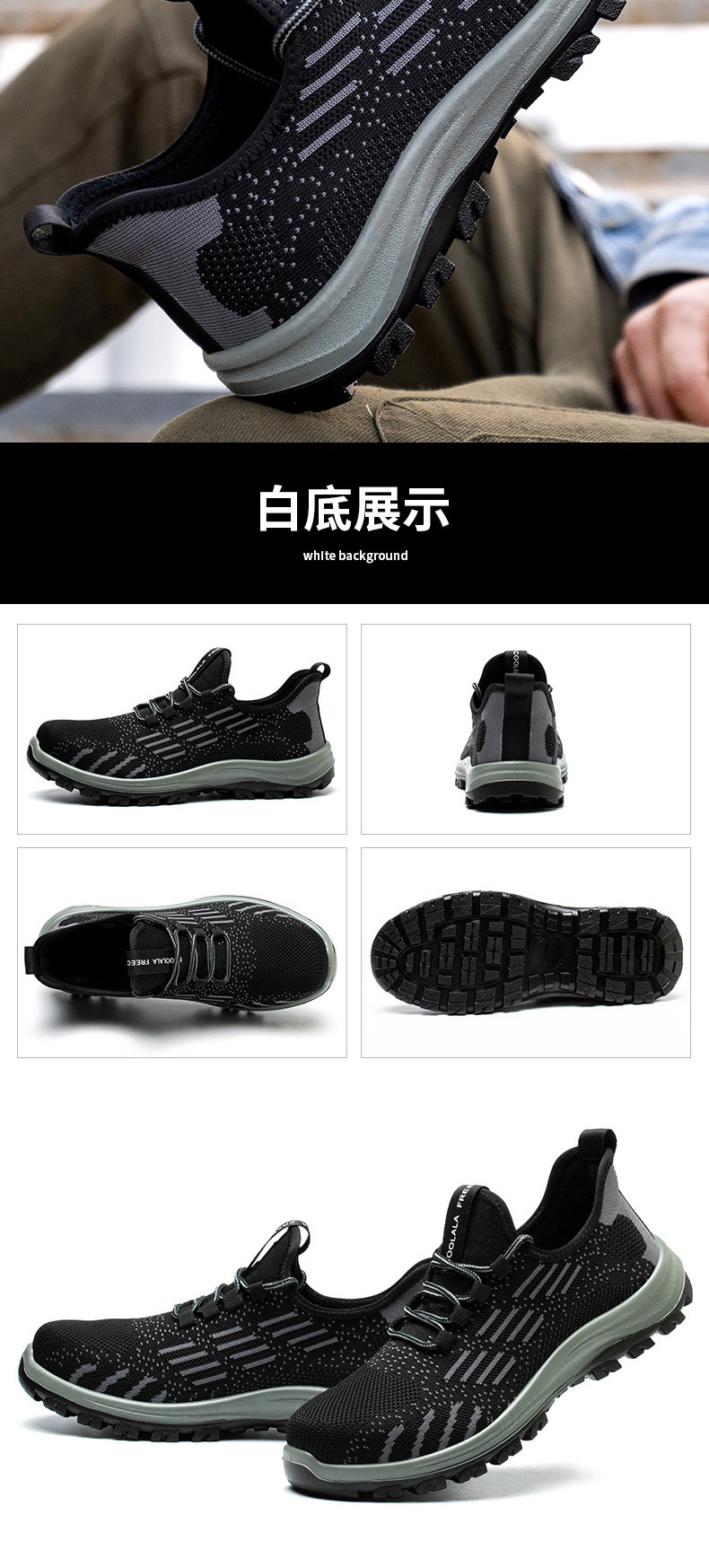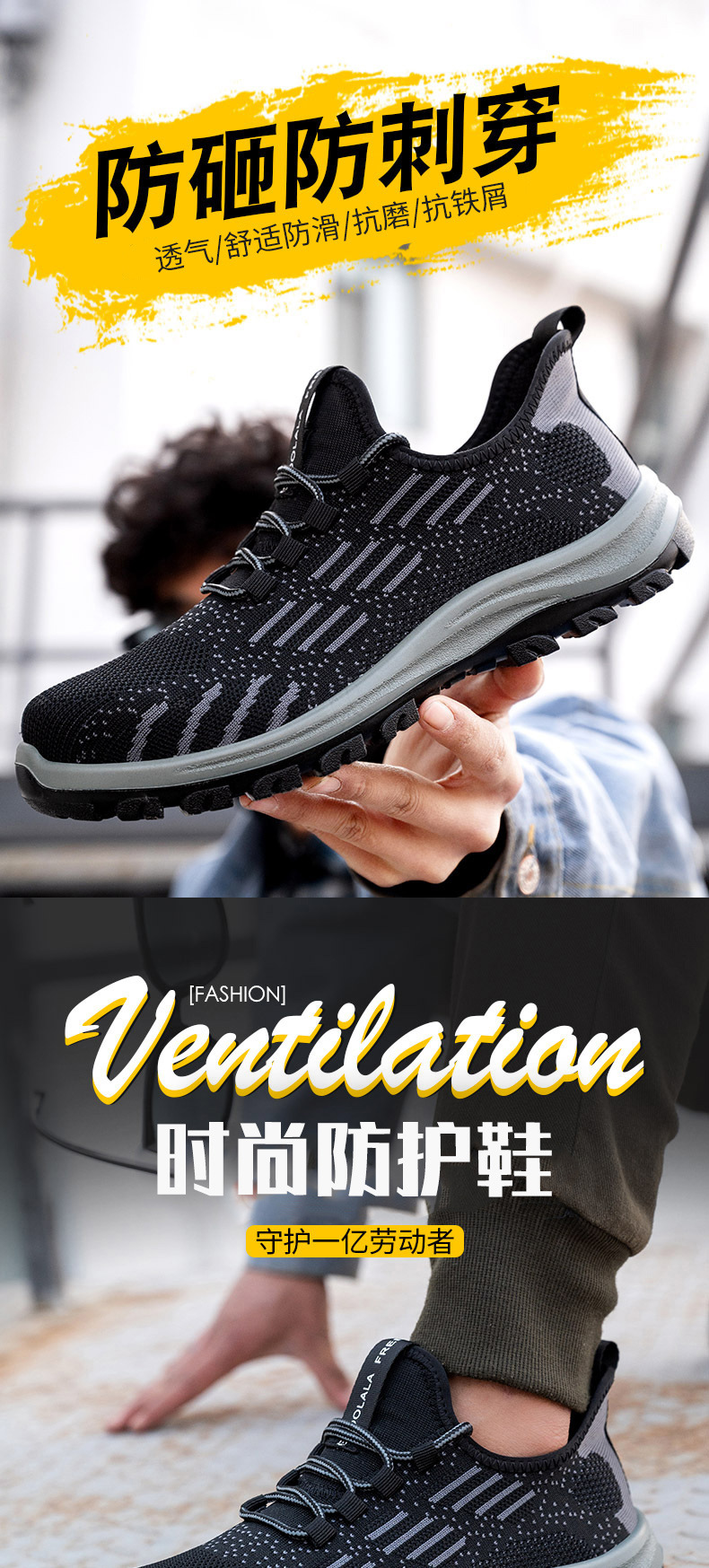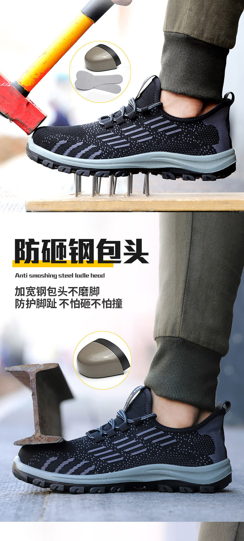 남성용 여름 플라이 니트 노동 보호 신발, 파손 방지, 펑크 방지 플라이 니트 메쉬, 통기성, 경량, 미끄럼 방지, 내마모성, 안전 작업 신발