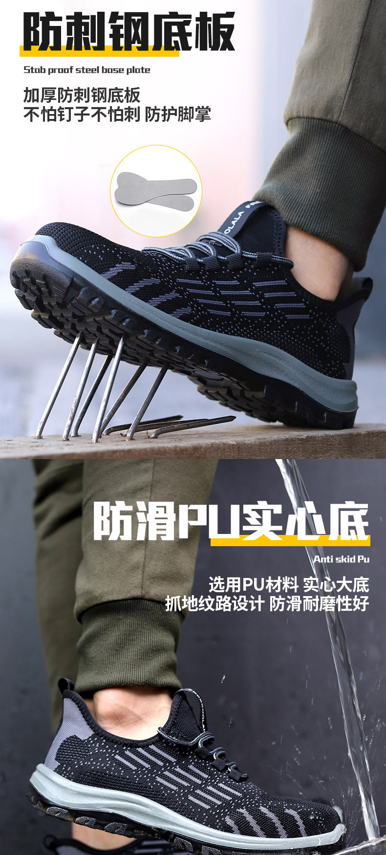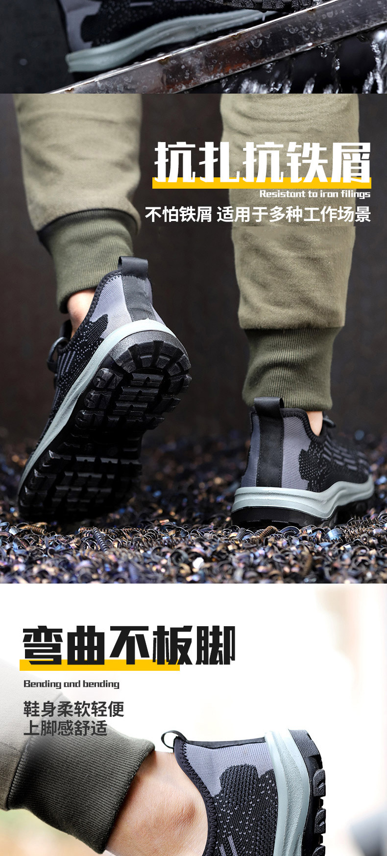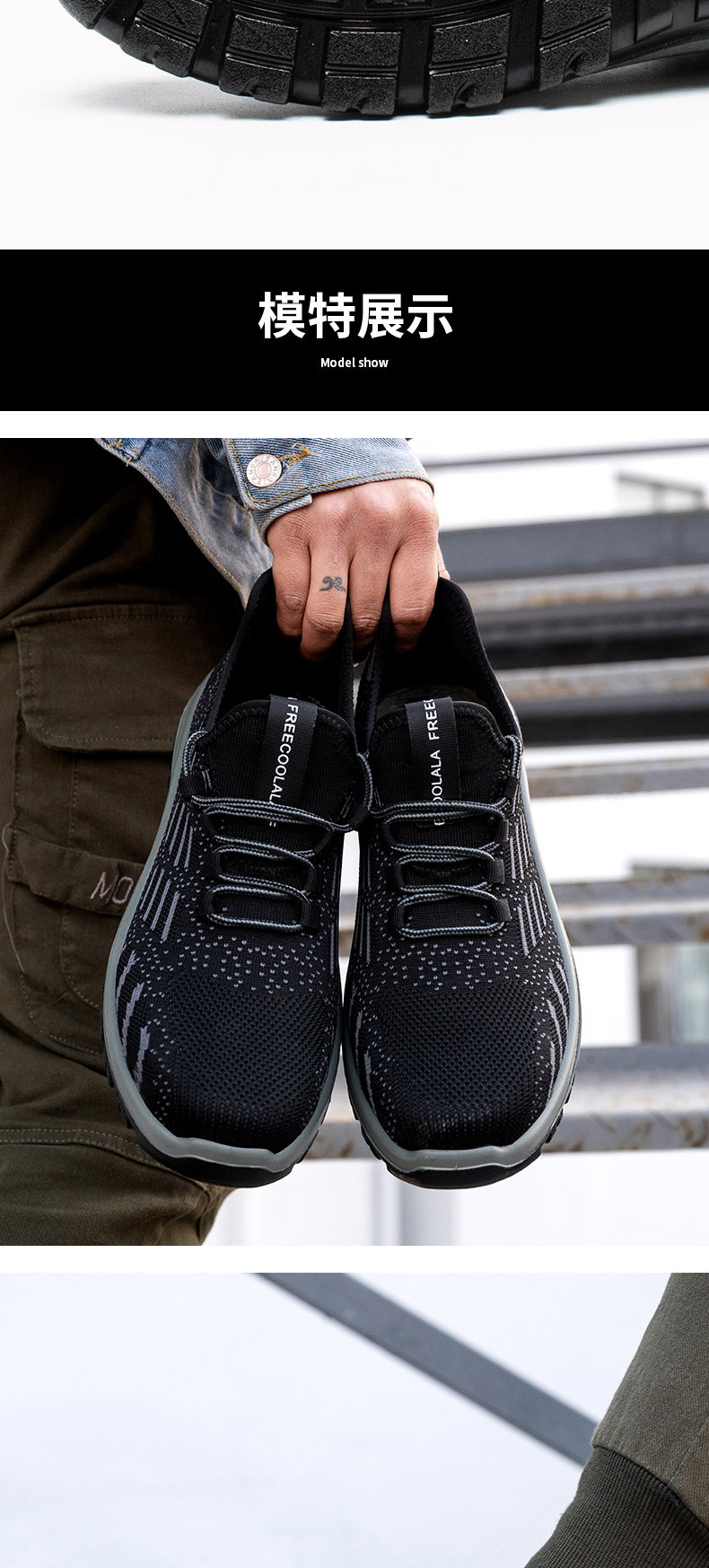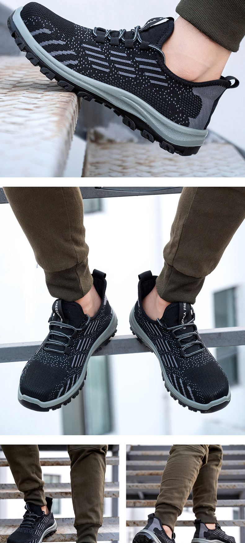 남성용 여름 플라이 니트 노동 보호 신발, 파손 방지, 펑크 방지 플라이 니트 메쉬, 통기성, 경량, 미끄럼 방지, 내마모성, 안전 작업 신발