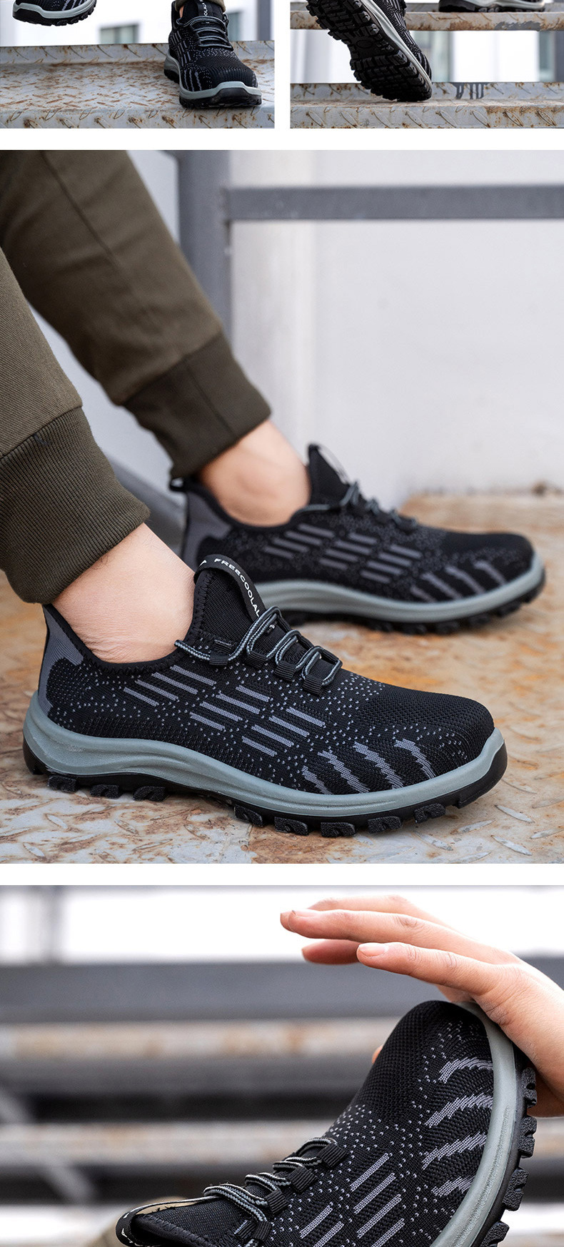 남성용 여름 플라이 니트 노동 보호 신발, 파손 방지, 펑크 방지 플라이 니트 메쉬, 통기성, 경량, 미끄럼 방지, 내마모성, 안전 작업 신발스토어 가기