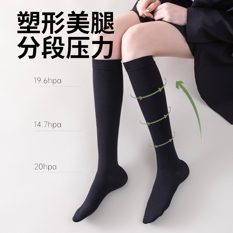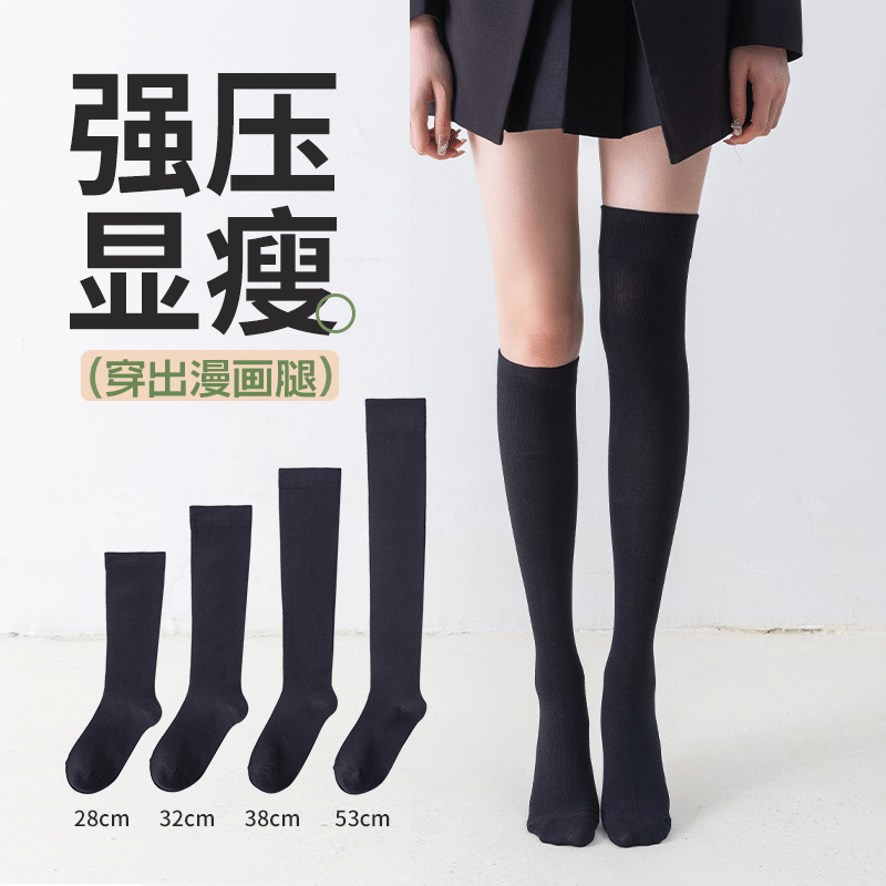 송아지 양말 여성의 봄과 가을 슬리밍 강한 압축 모양의 검은 반 다리 JK 양말 반쪽 배럴 압력 긴 배럴 무릎 양말스토어 가기