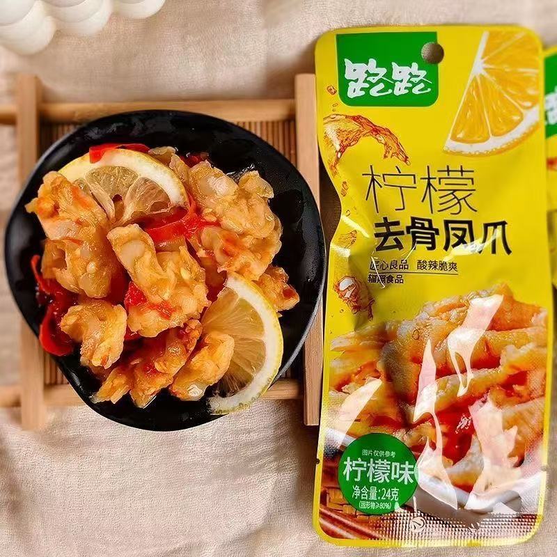 Lu Lu 뼈없는 치킨 발톱 레몬 매운 바삭 바삭한 그물 레드 스낵 뼈없는 치킨 발톱 와인 요리 식욕을 돋우는 스낵 도매