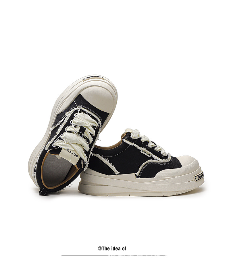 [스타 같은 스타일] 큰 머리를 가진 남성과 여성을위한 두꺼운 밑창 증가 붕대 캔버스 신발 커플을위한 작은 흰색 신발 증가스토어 가기