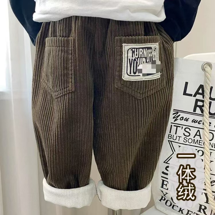 소년 벨벳 바지 한 조각 두꺼운 코듀로이 가을과 겨울 어린이 넓은 다리 바지 어린이 겨울 2024 새로운스토어 가기