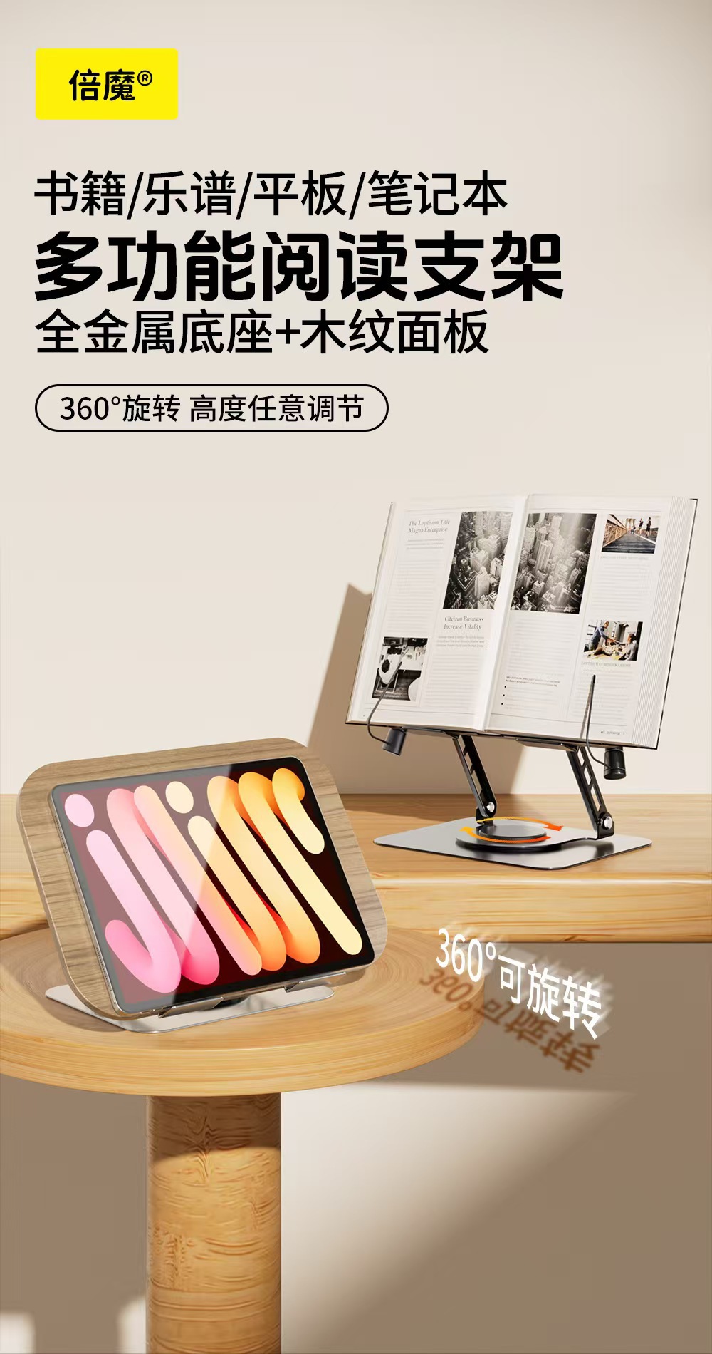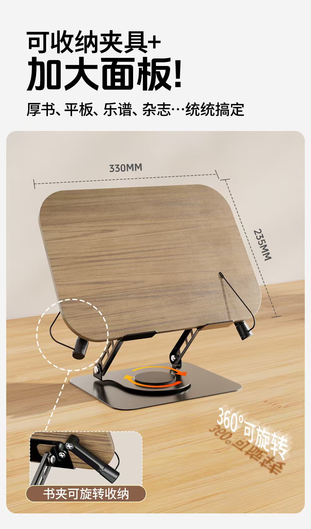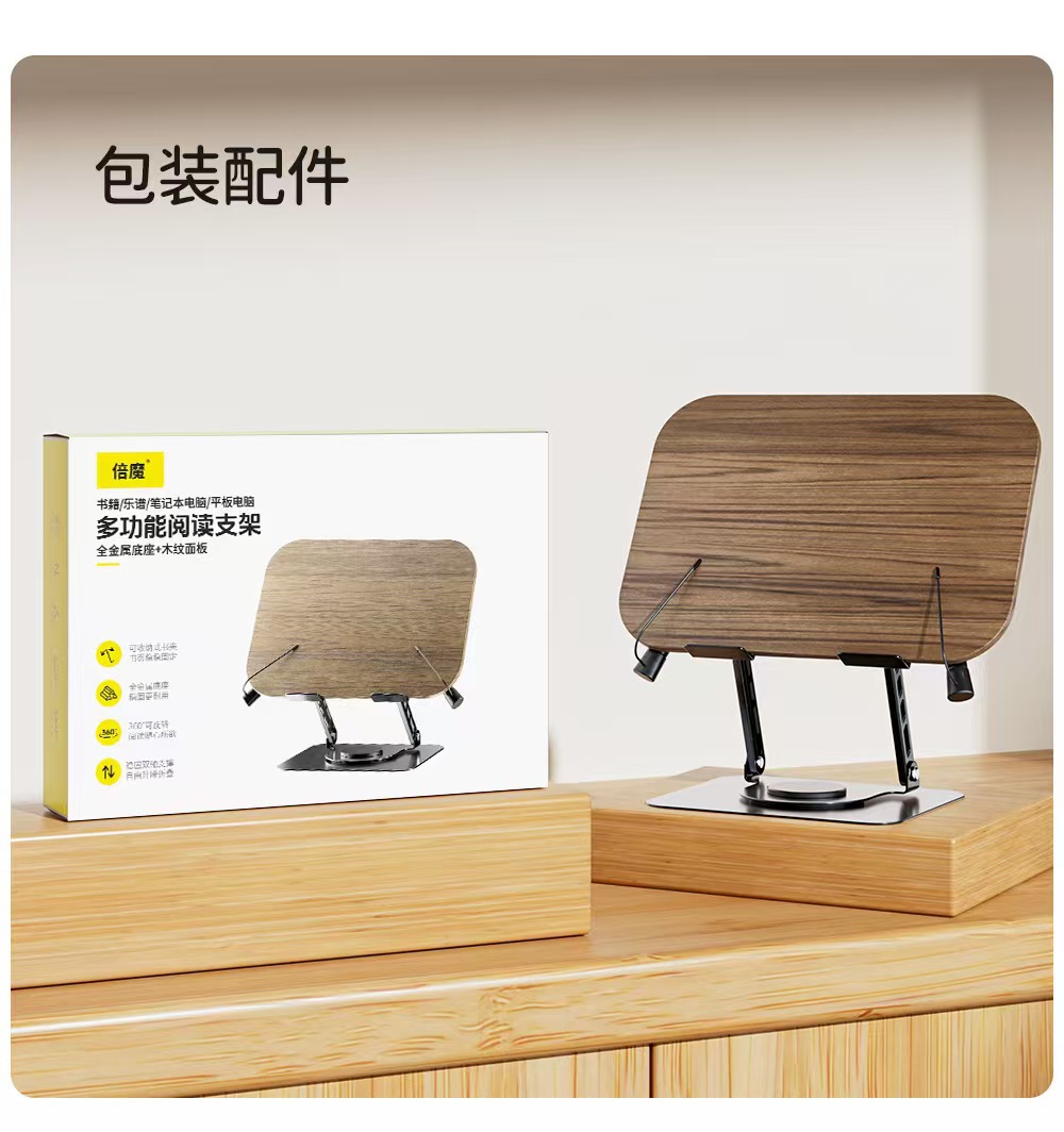 더블 매직 회전 식 독서 스탠드 금속 다기능 독서 학생 데스크탑 독서 악보 나무 태블릿 학습