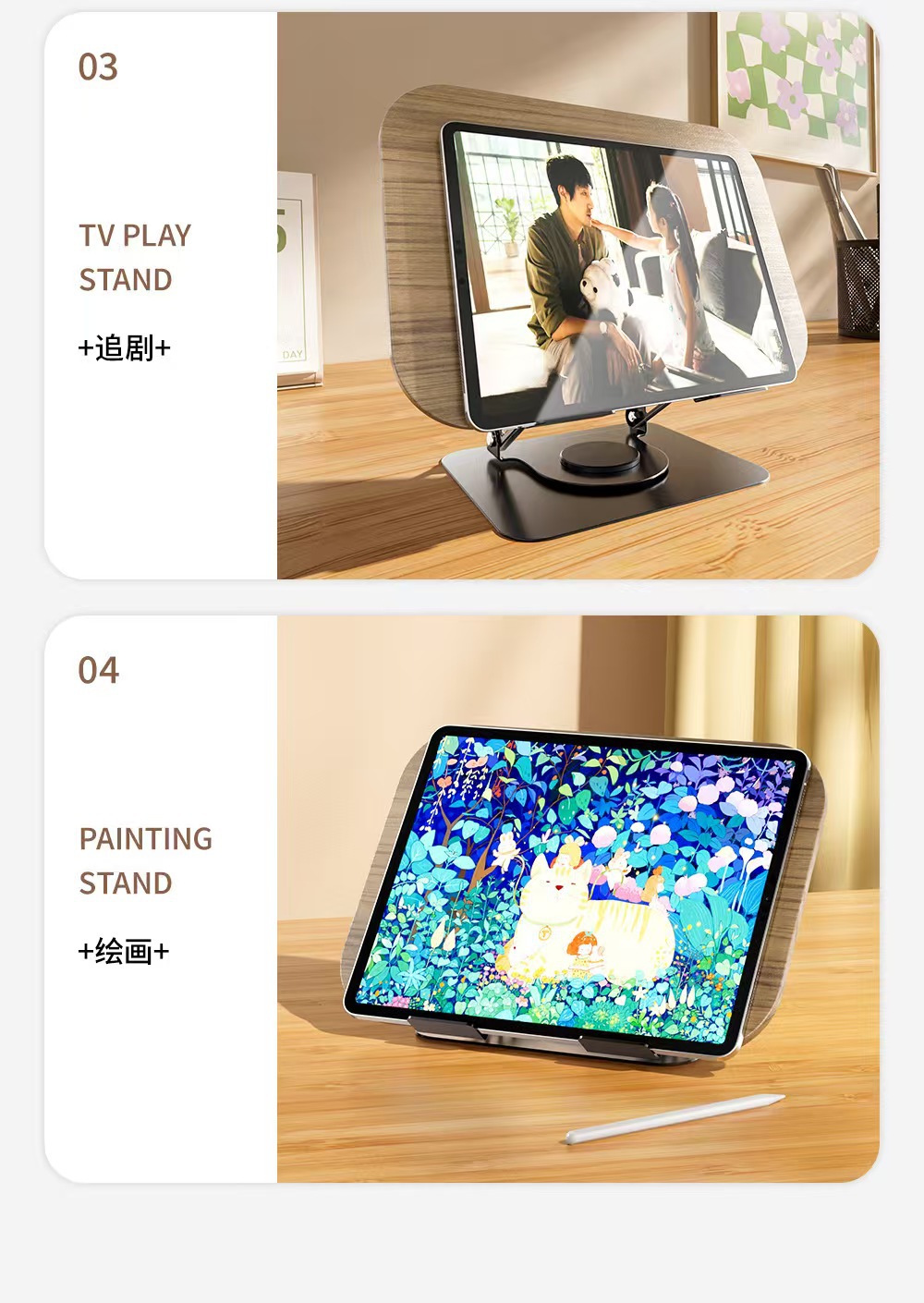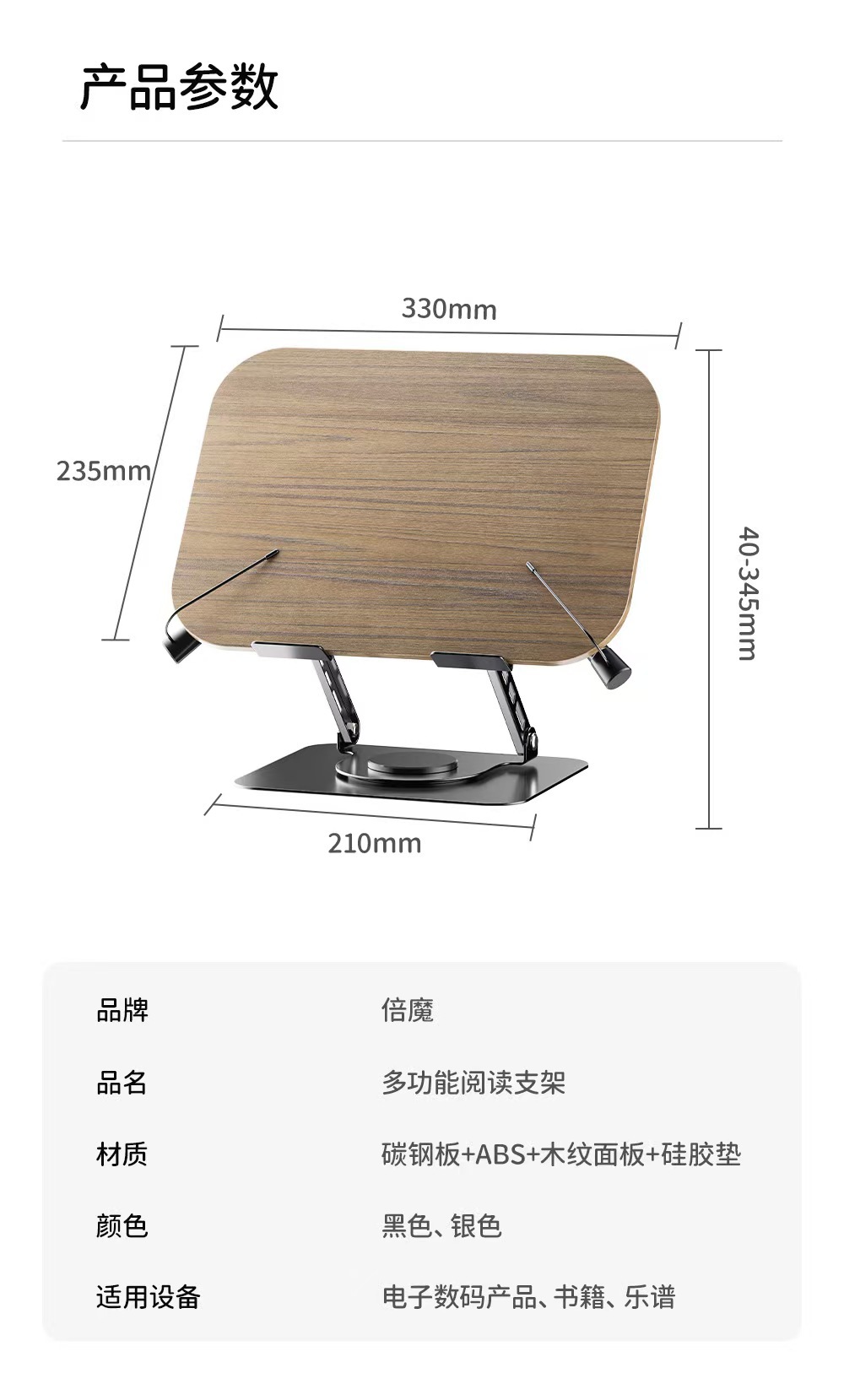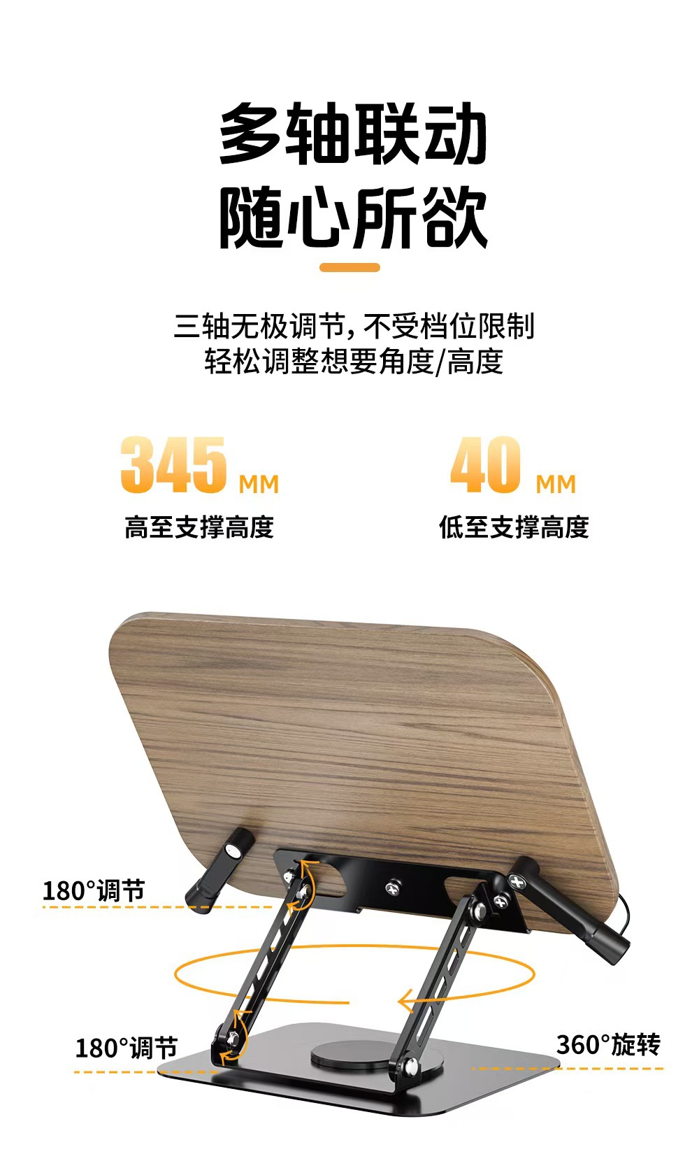 더블 매직 회전 식 독서 스탠드 금속 다기능 독서 학생 데스크탑 독서 악보 나무 태블릿 학습