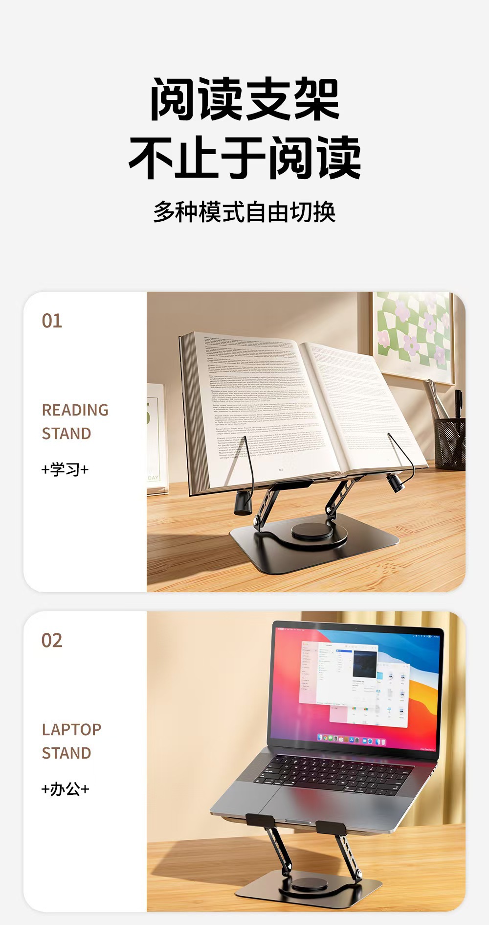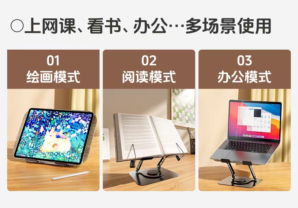 더블 매직 회전 식 독서 스탠드 금속 다기능 독서 학생 데스크탑 독서 악보 나무 태블릿 학습스토어 가기