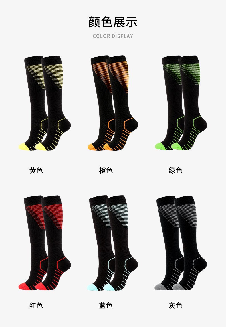 아마존 새로운 컬러 패턴 V 자형 압력 양말 남성 및 여성 스팅거 야외 스포츠 긴 양말 피트니스 송아지 양말