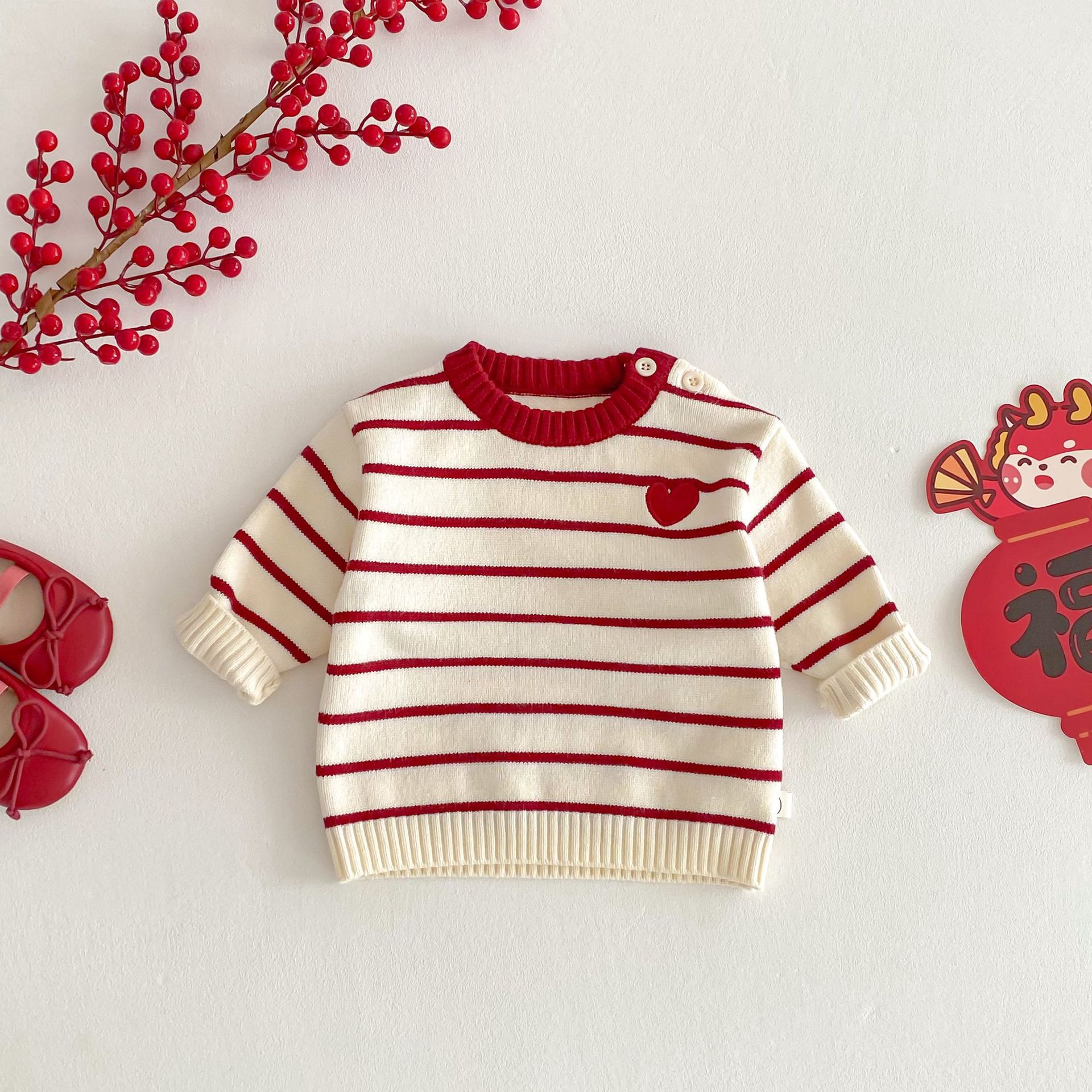 어린이 두꺼운 스웨터 겨울 2025 새 소녀의 줄무늬 니트 풀오버 아기의 새해 복스토어 가기