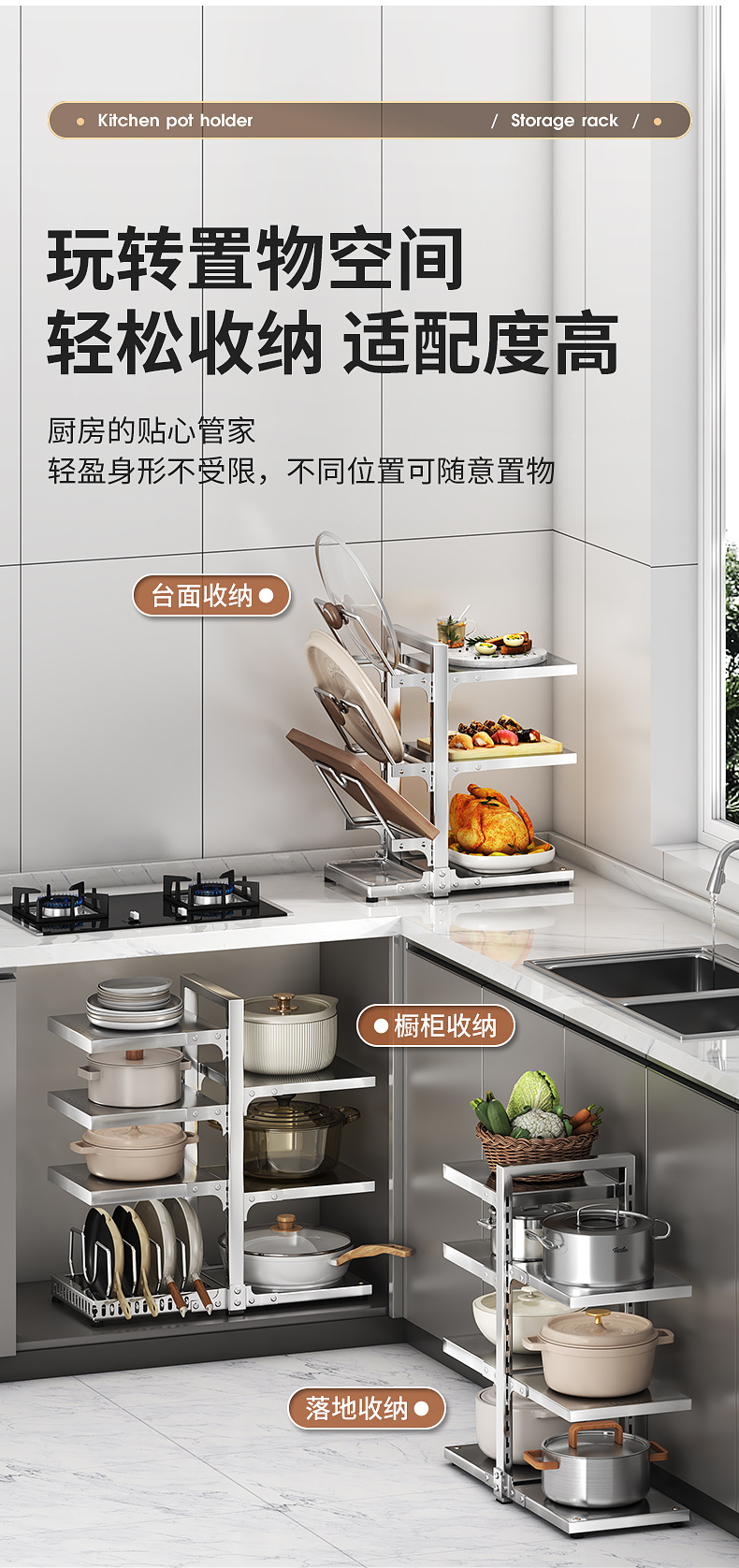 주방 보관 랙 잉크 다층 가정용 카운터 탑 랙 랙 캐비닛 레이어 냄비 저장 랙