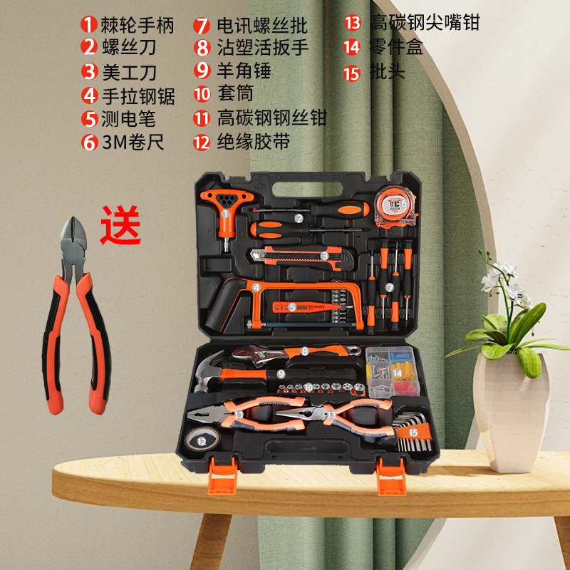 100 개의 가정용 도구 상자 세트 렌치 스크루 드라이버 펜치 해머 도구 조합 목공 전기 도구 공장스토어 가기
