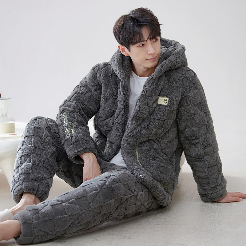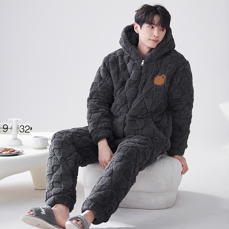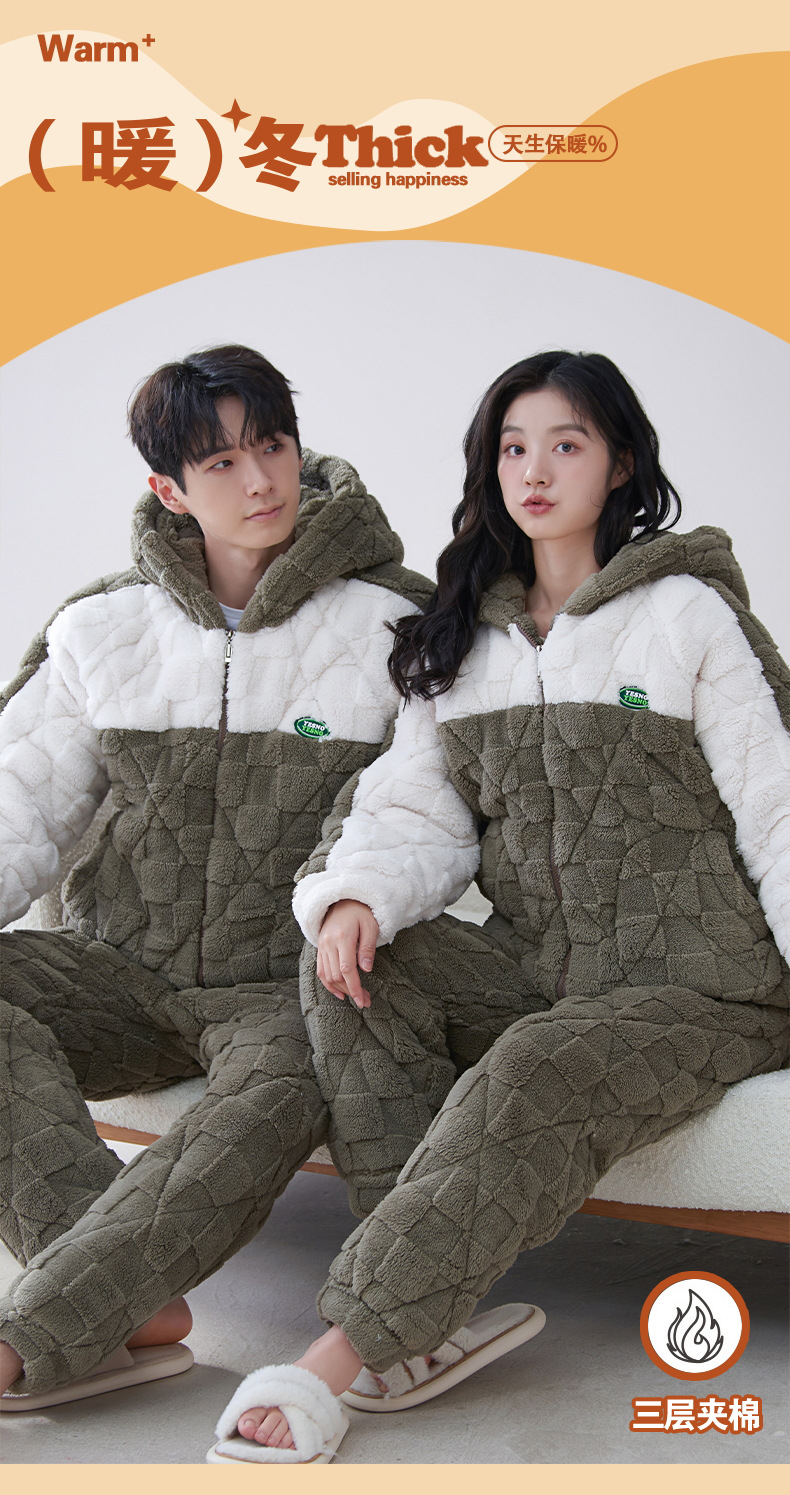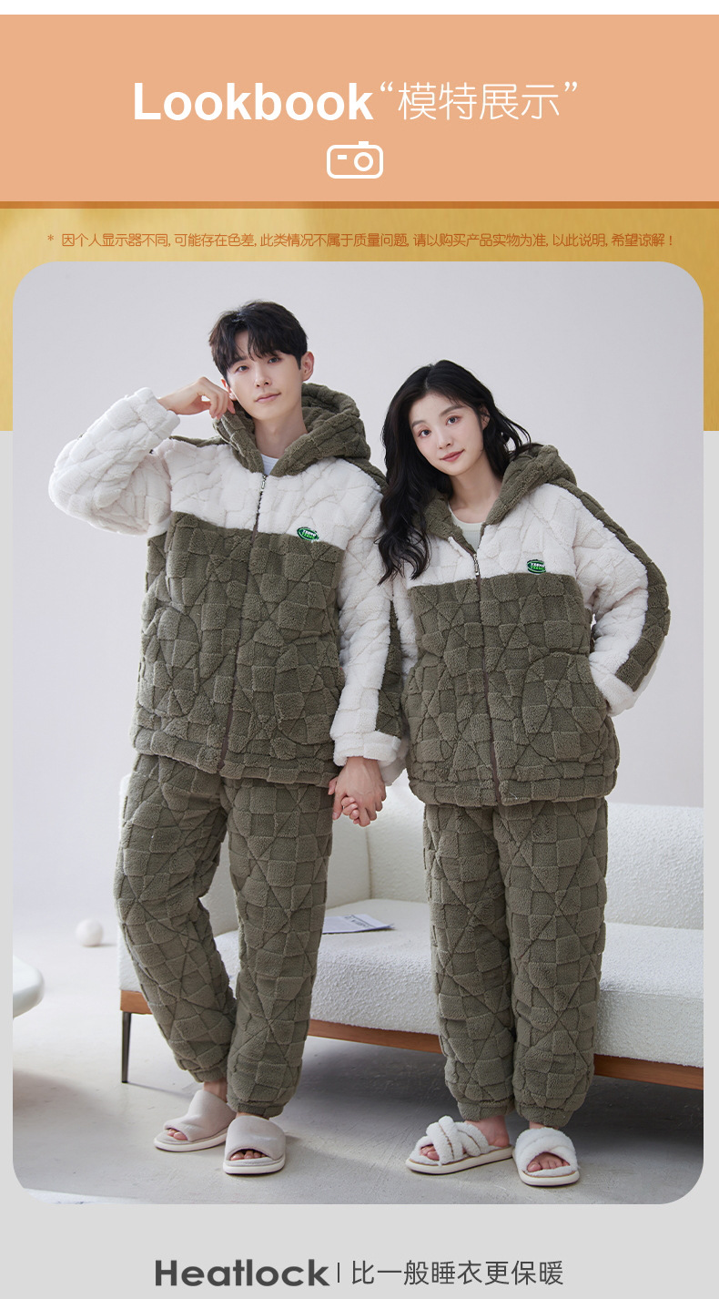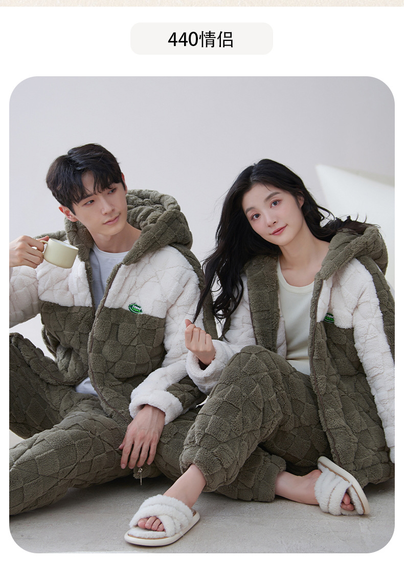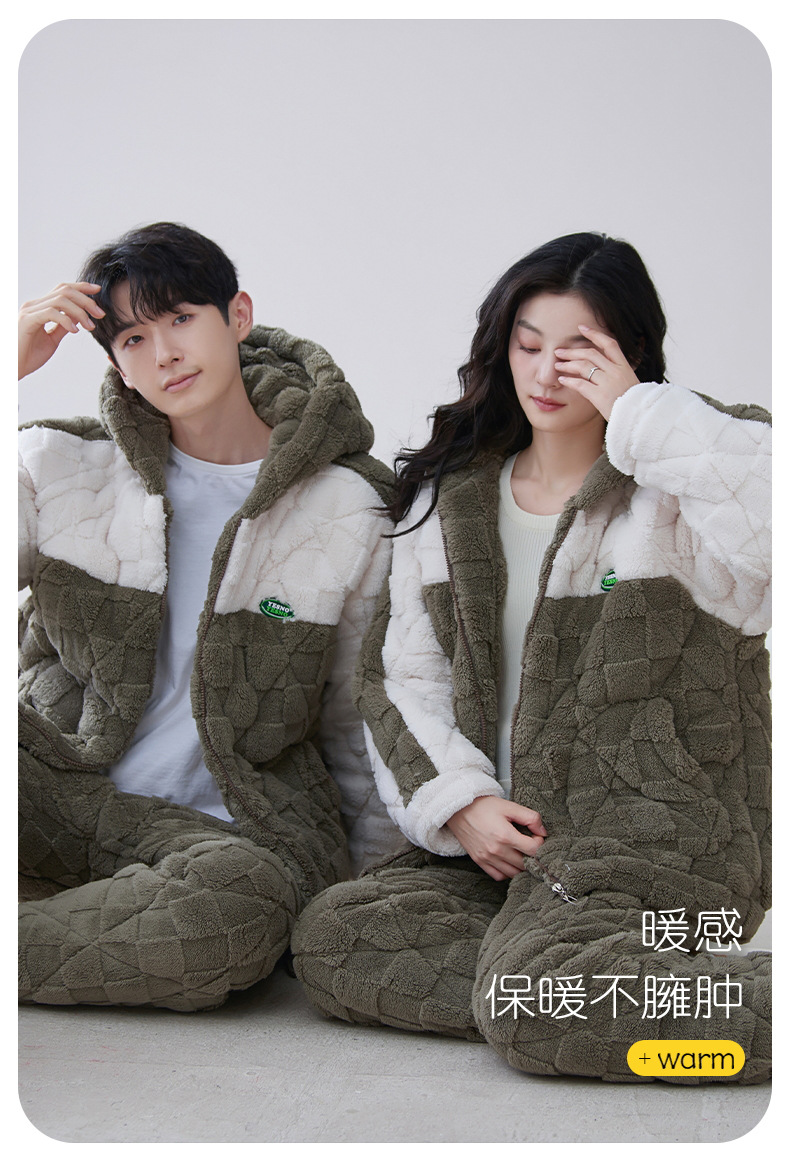 지퍼 커플 3 층 면, 새 남자 옷깃 파자마 여자 자카드 커플의 겨울 잠옷스토어 가기