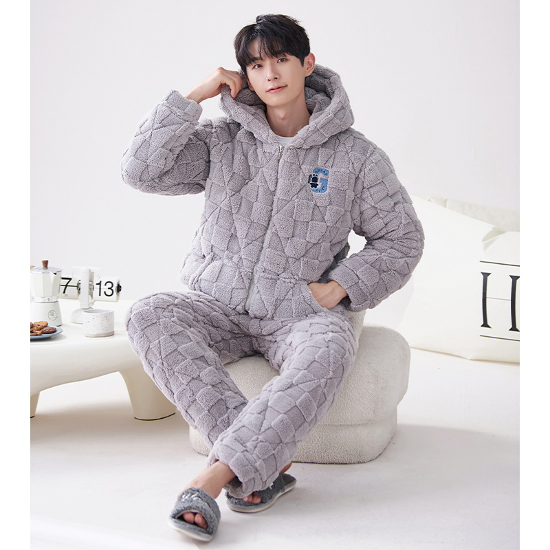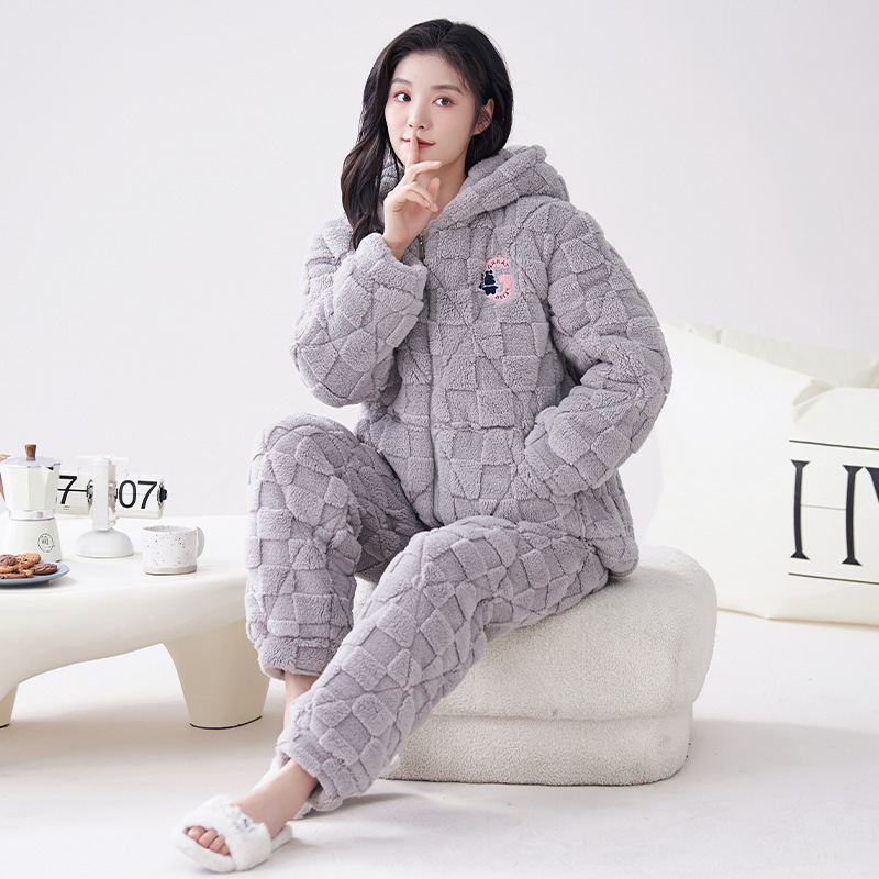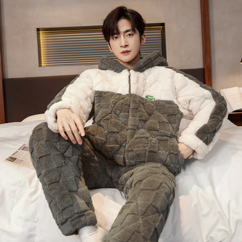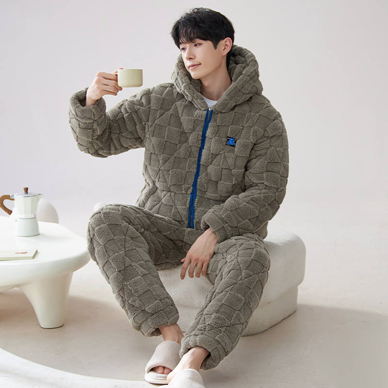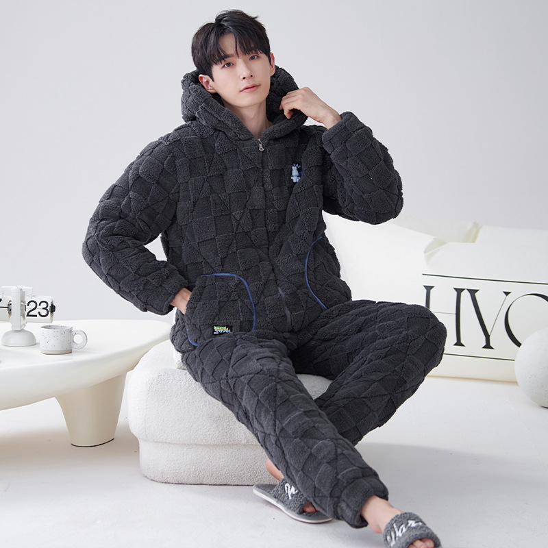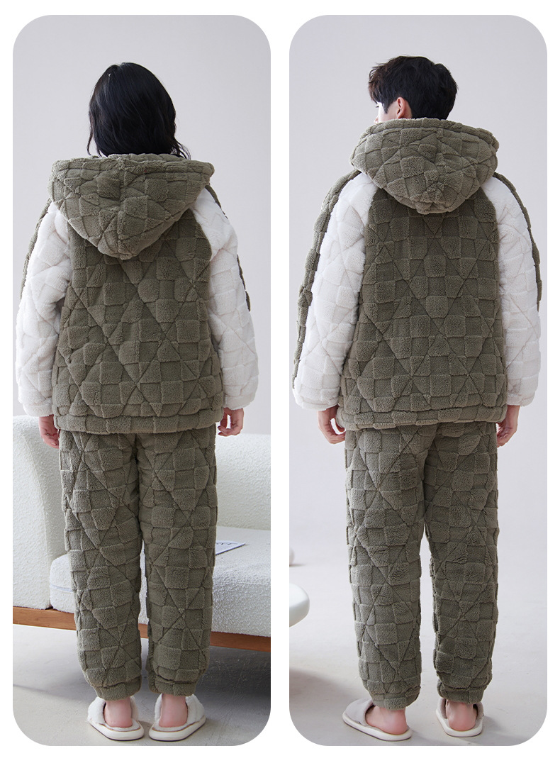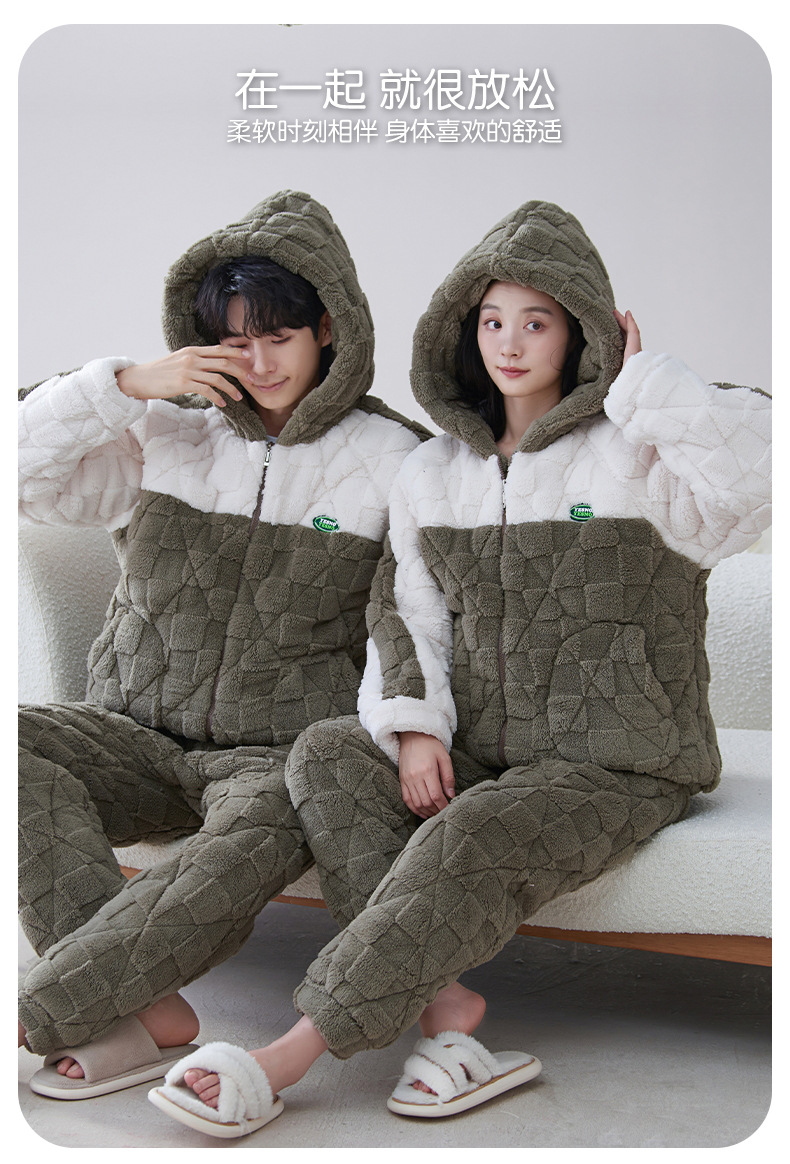 지퍼 커플 3 층 면, 새 남자 옷깃 파자마 여자 자카드 커플의 겨울 잠옷스토어 가기
