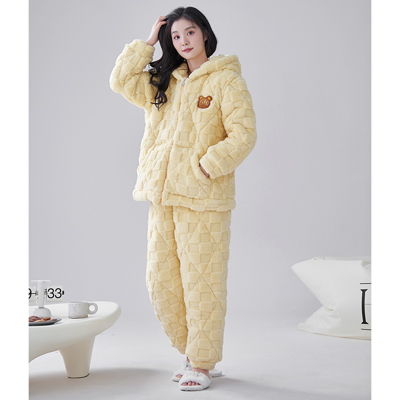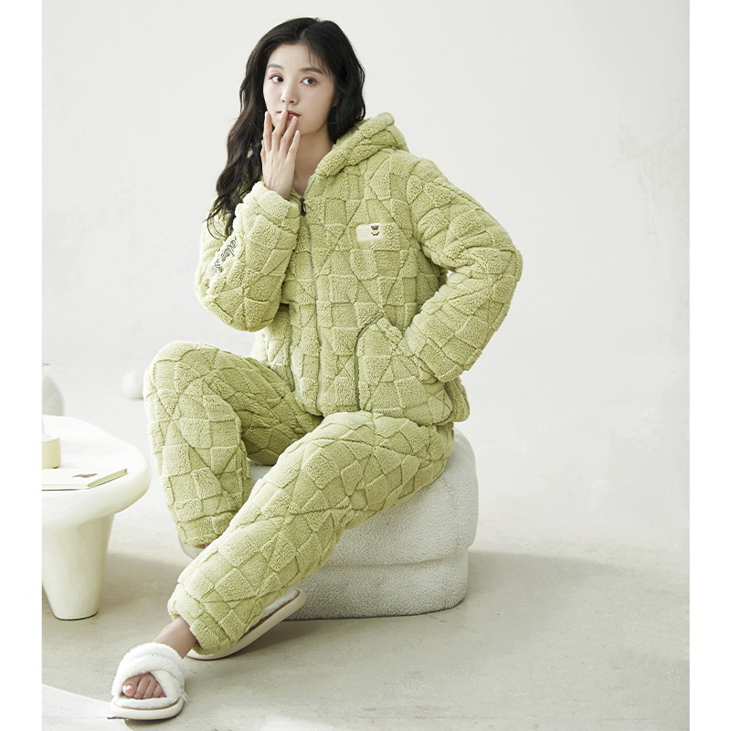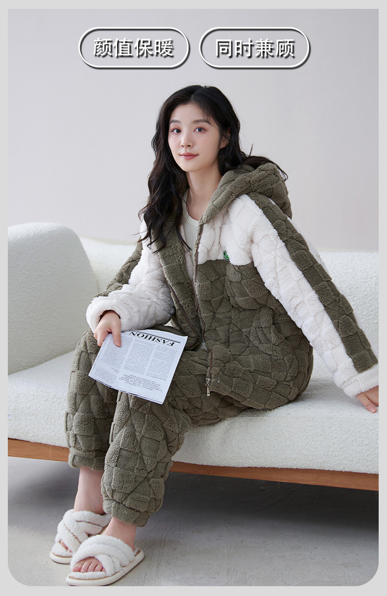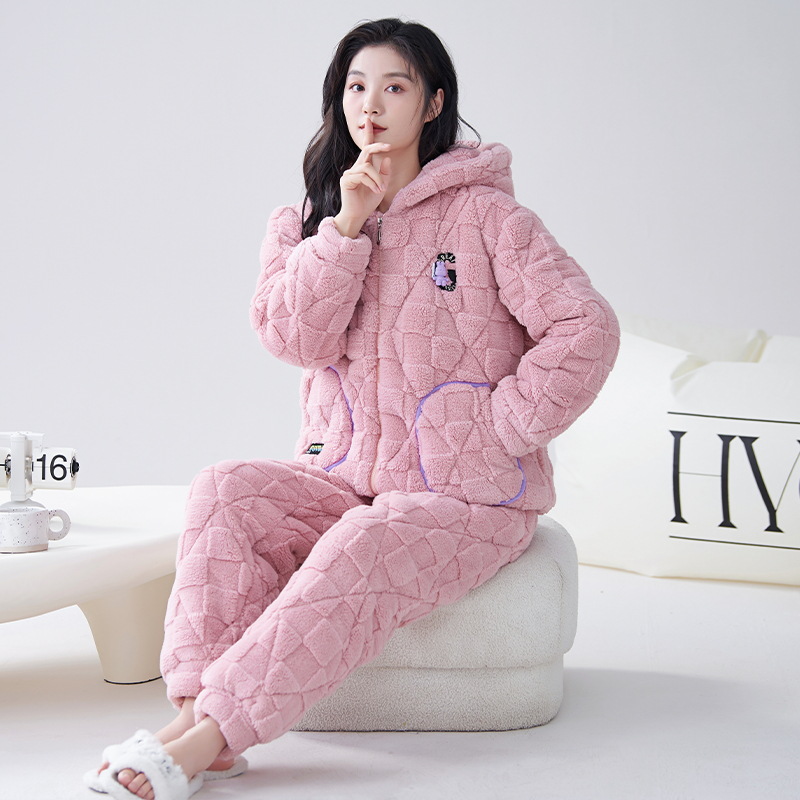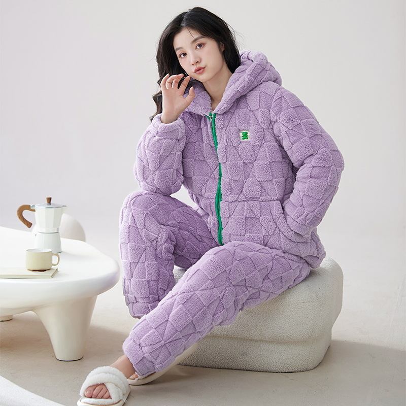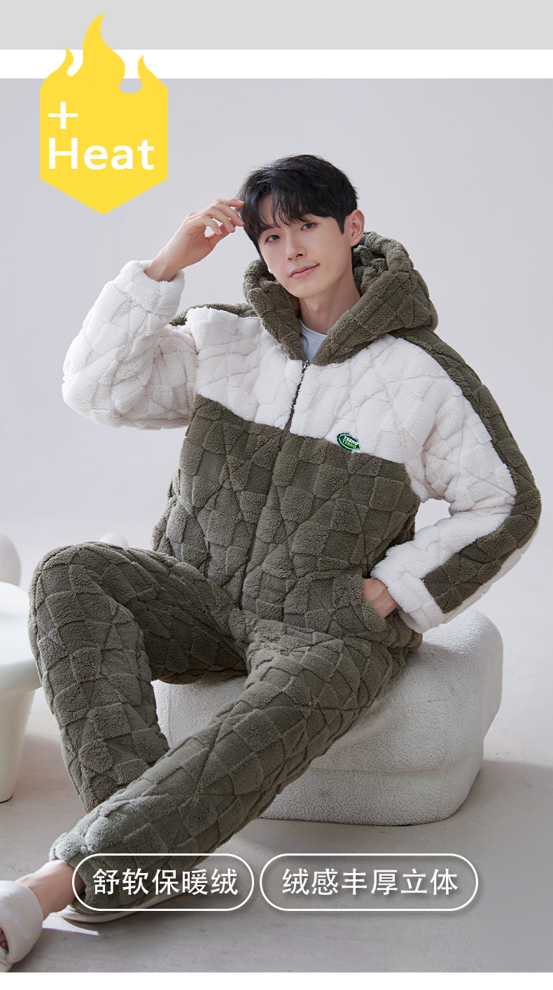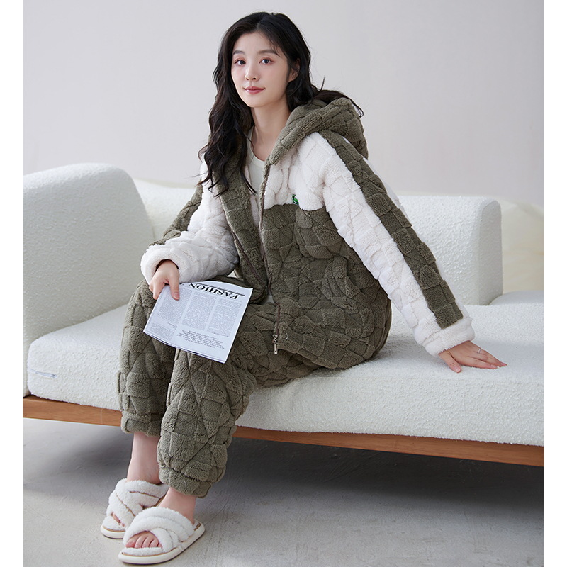 지퍼 커플 3 층 면, 새 남자 옷깃 파자마 여자 자카드 커플의 겨울 잠옷스토어 가기