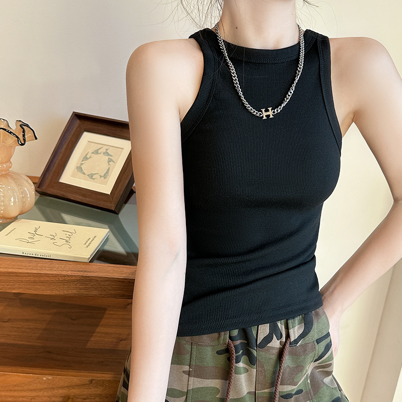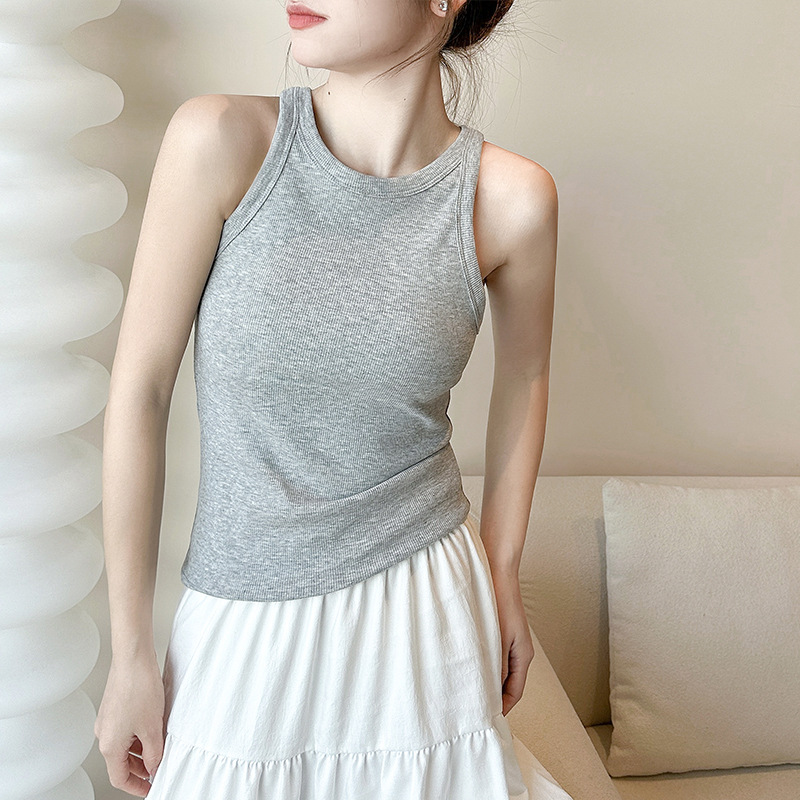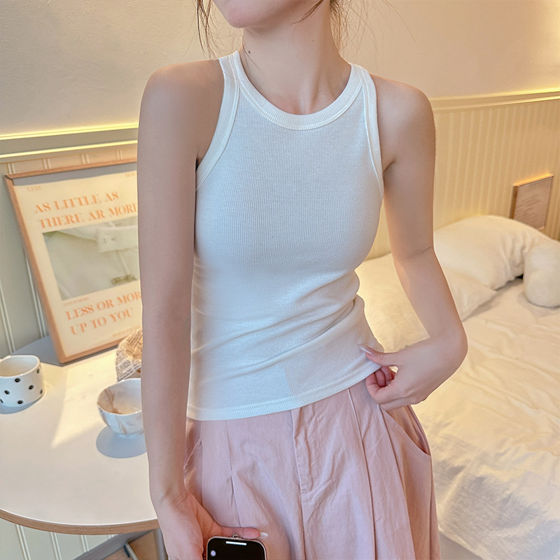 여성용 여름 2026 신상 라운드넥 민소매 니트 탑, 이너웨어 또는 아우터웨어로 착용 가능한 나시 스타일의 짧은 탑스토어 가기