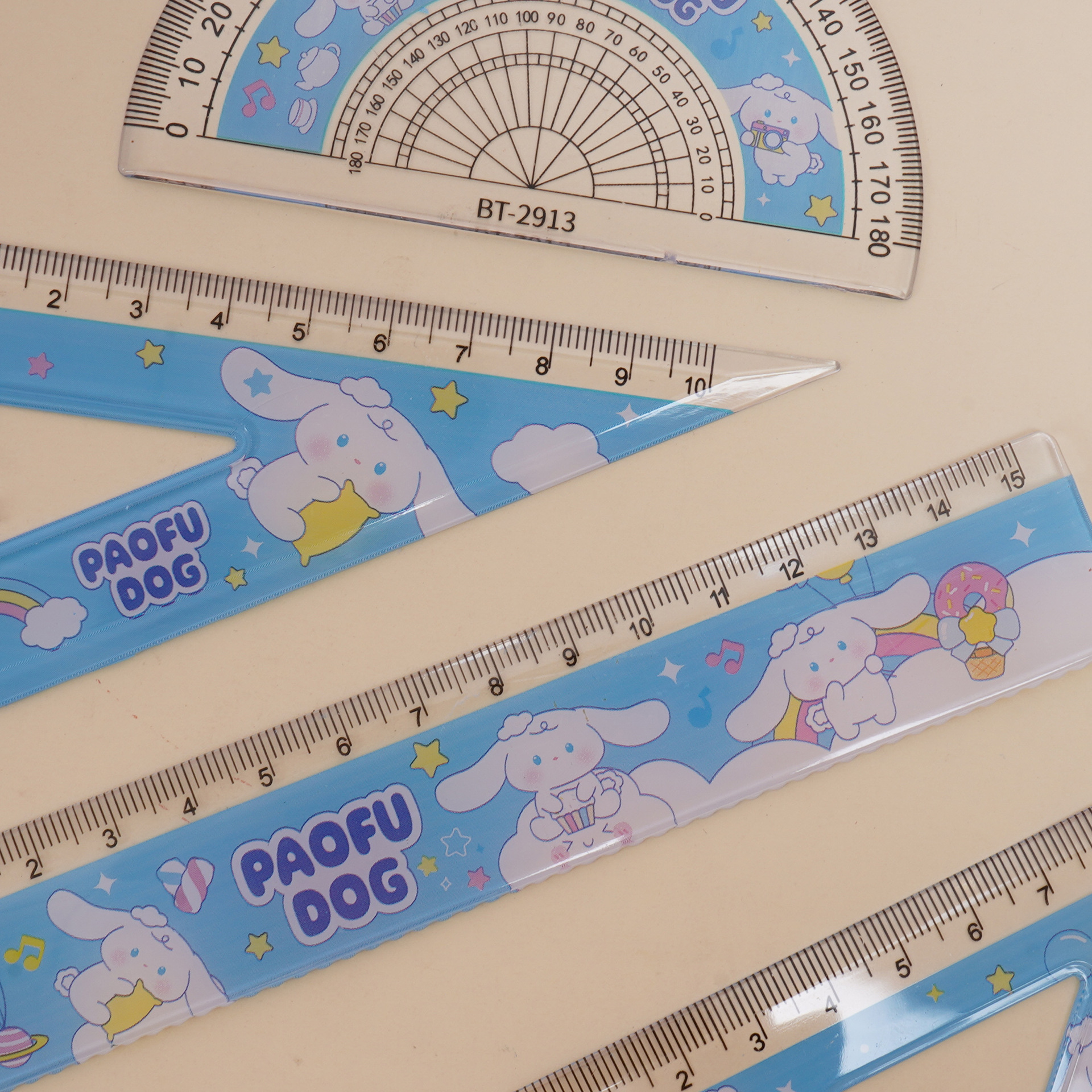 새로운 옥 구이 개 세트 통치자 창조적 인 만화 귀여운 Instagram 소녀 심장 15cm 통치자 큰 귀 개 삼각형 통치자스토어 가기