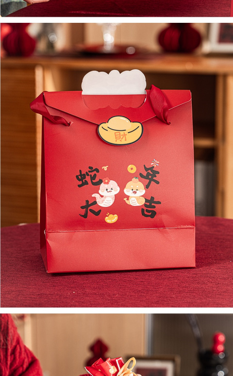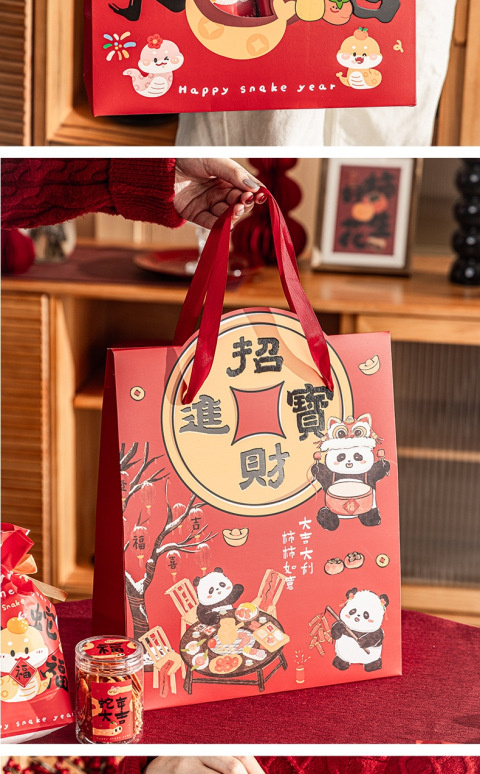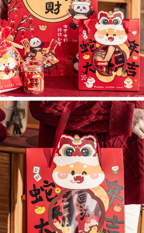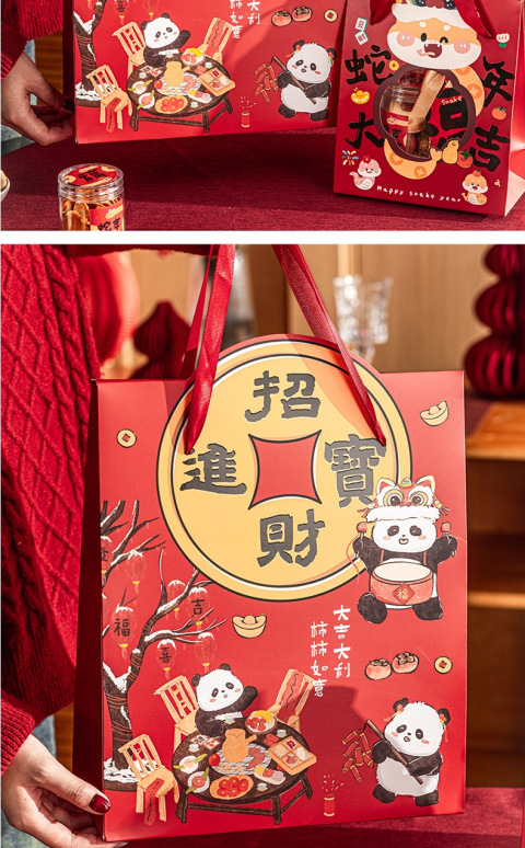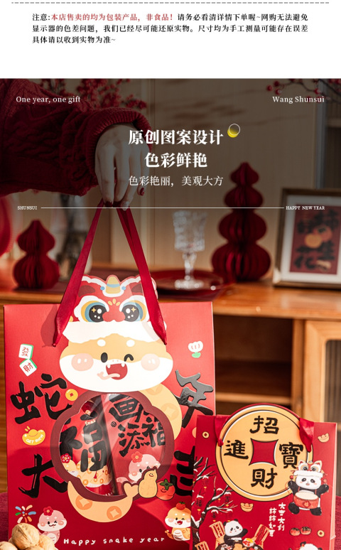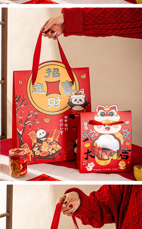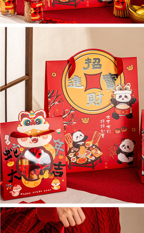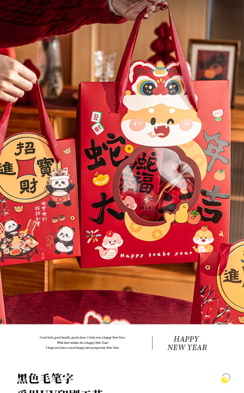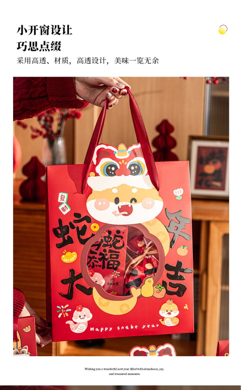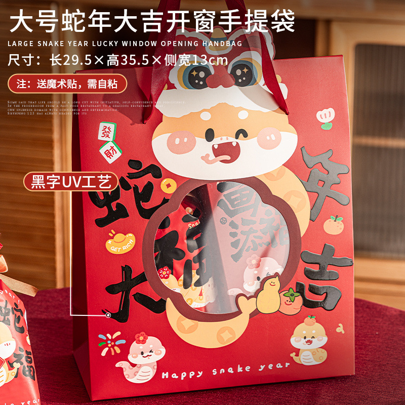 뱀 봄 축제 핸드백 Guofeng 2025 새해 선물 가방 설날 선물 상자 포장 가방 레드 축제스토어 가기