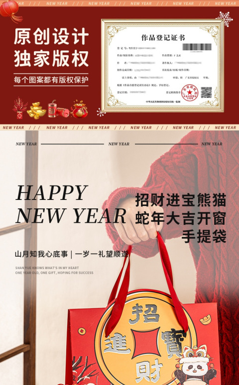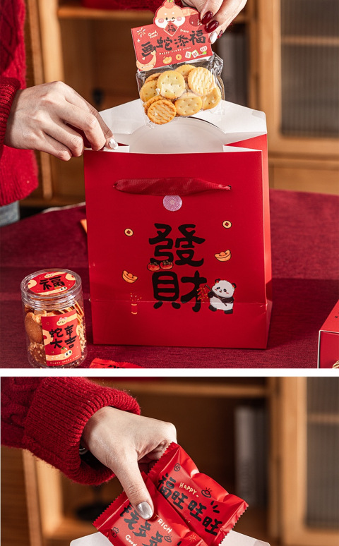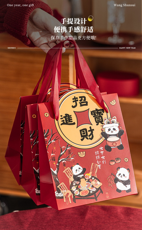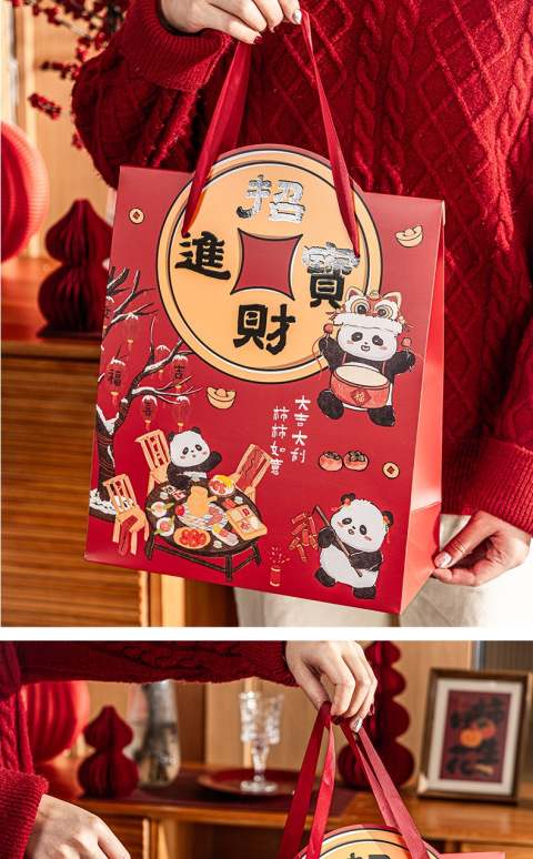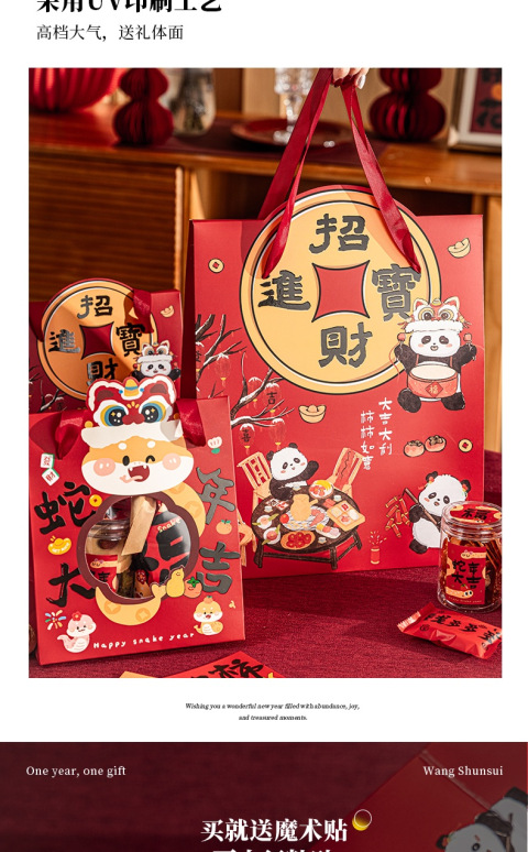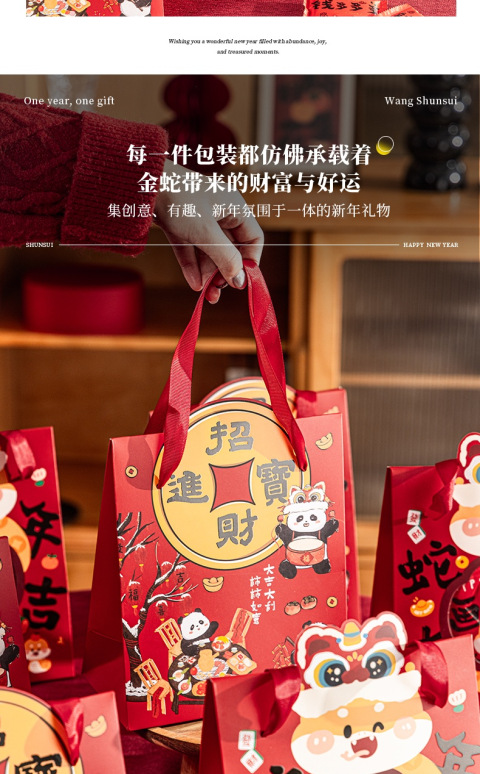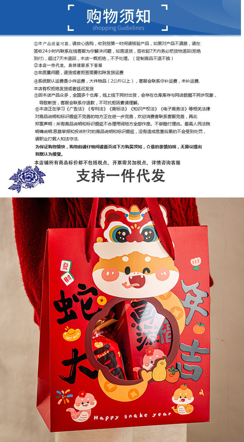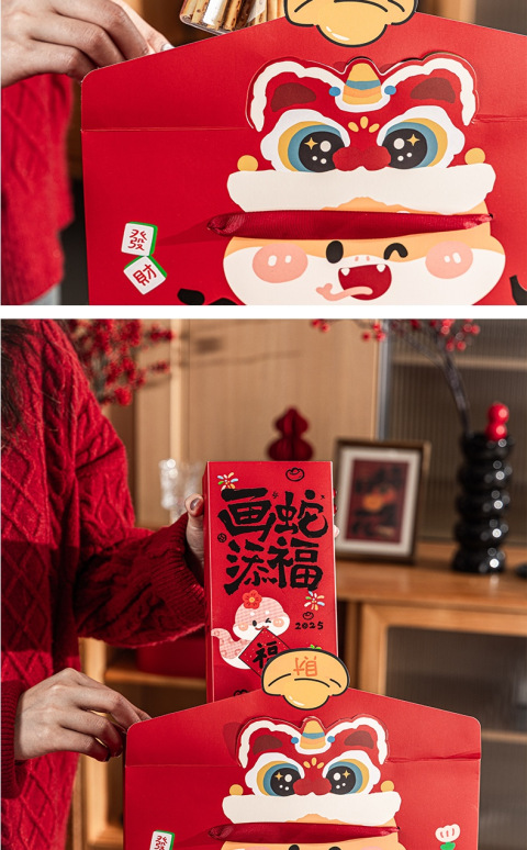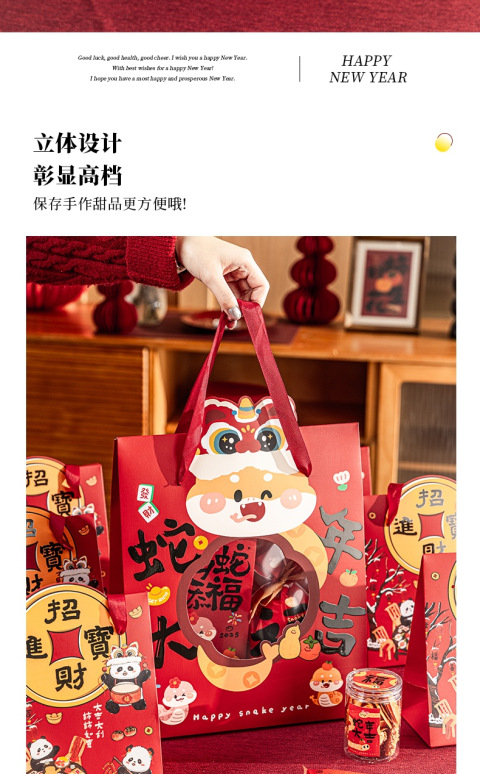 뱀 봄 축제 핸드백 Guofeng 2025 새해 선물 가방 설날 선물 상자 포장 가방 레드 축제스토어 가기
