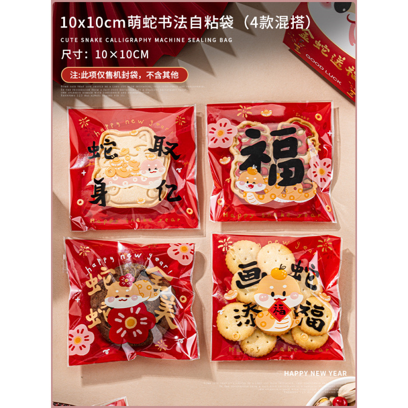 • 10x10 귀여운 뱀 서예 접착식 가방 100개