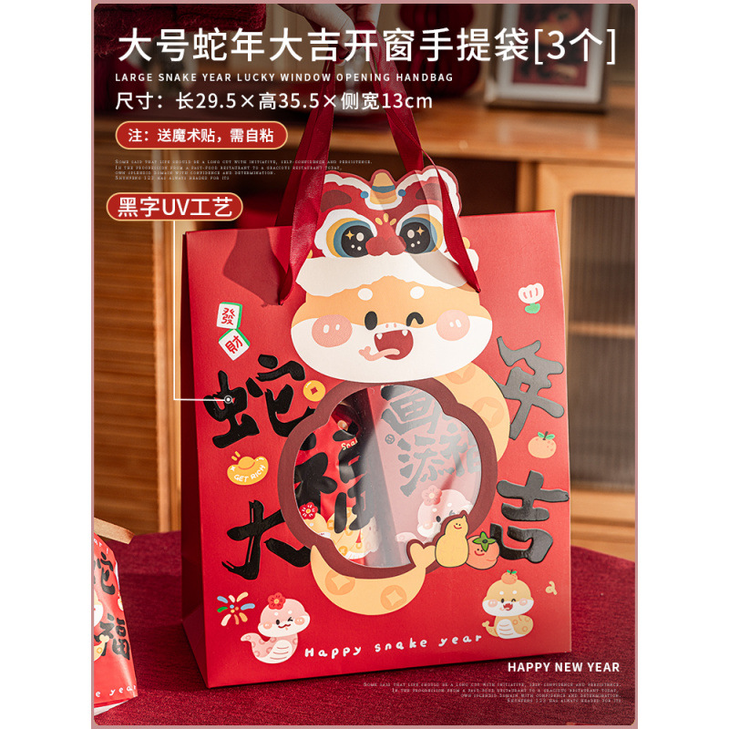 • 대형 [3개입] 뱀의 해에 행운을 니다 윈도우 핸드백