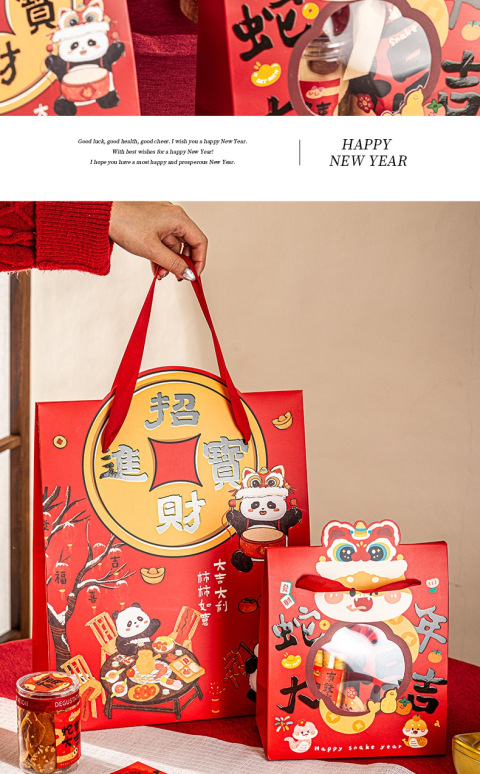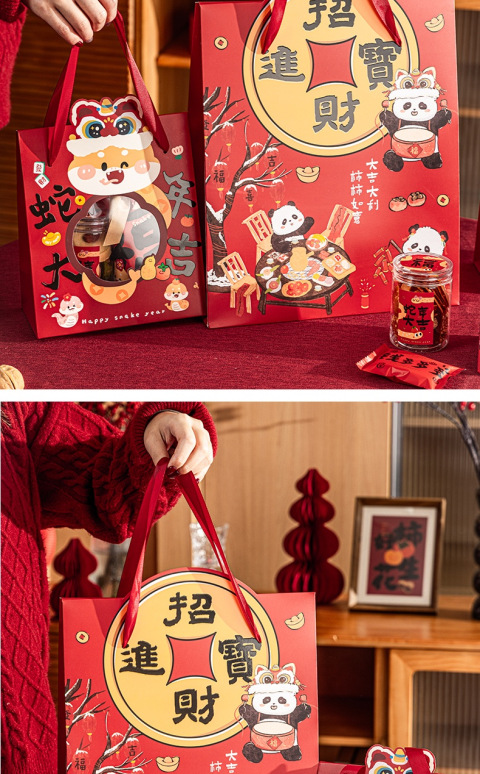 뱀 봄 축제 핸드백 Guofeng 2025 새해 선물 가방 설날 선물 상자 포장 가방 레드 축제