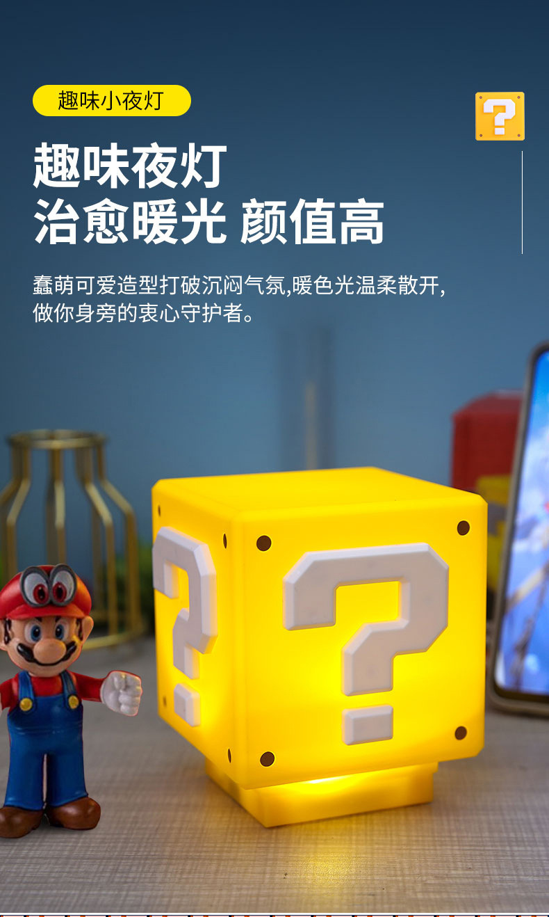 마리오 프레스 음향 효과 침대 옆 정사각형 물음표 조명 충전 led 슈퍼 메리 밤 빛 별 빛스토어 가기