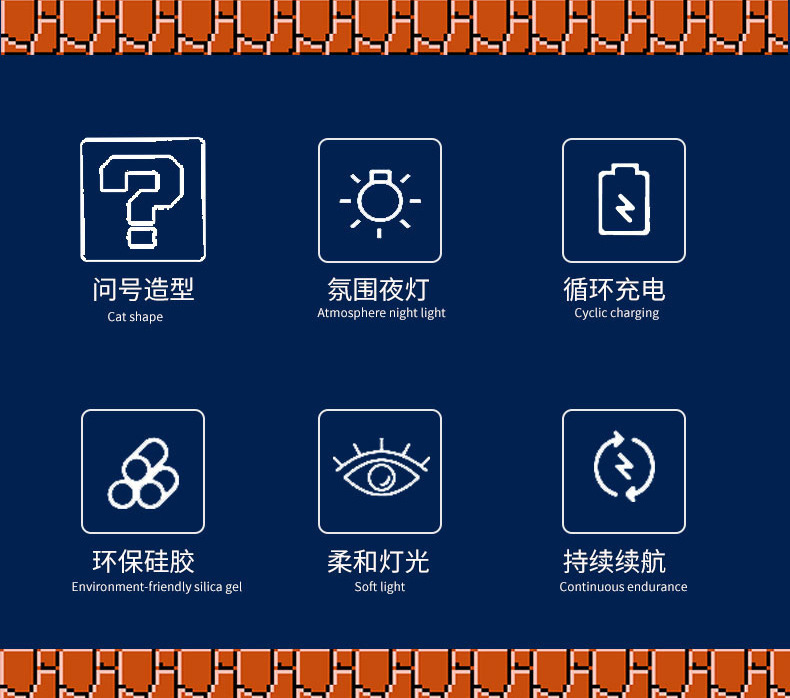 마리오 프레스 음향 효과 침대 옆 정사각형 물음표 조명 충전 led 슈퍼 메리 밤 빛 별 빛