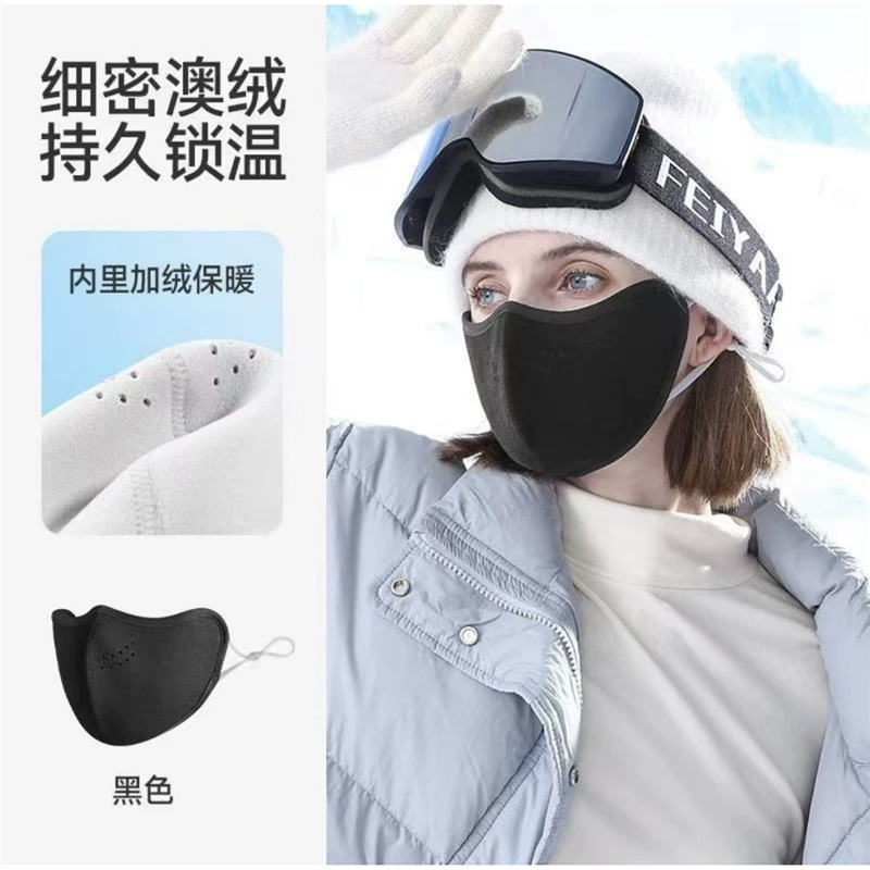 겨울 양면 호주 벨벳 따뜻한 마스크 여성의 라이딩 추위는 3 차원 눈 보호 각도 방풍 마스크 차양을 착용 할 수 있습니다.