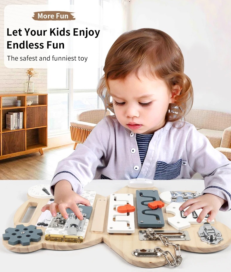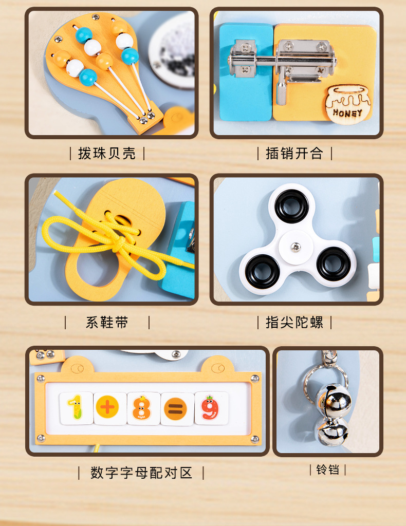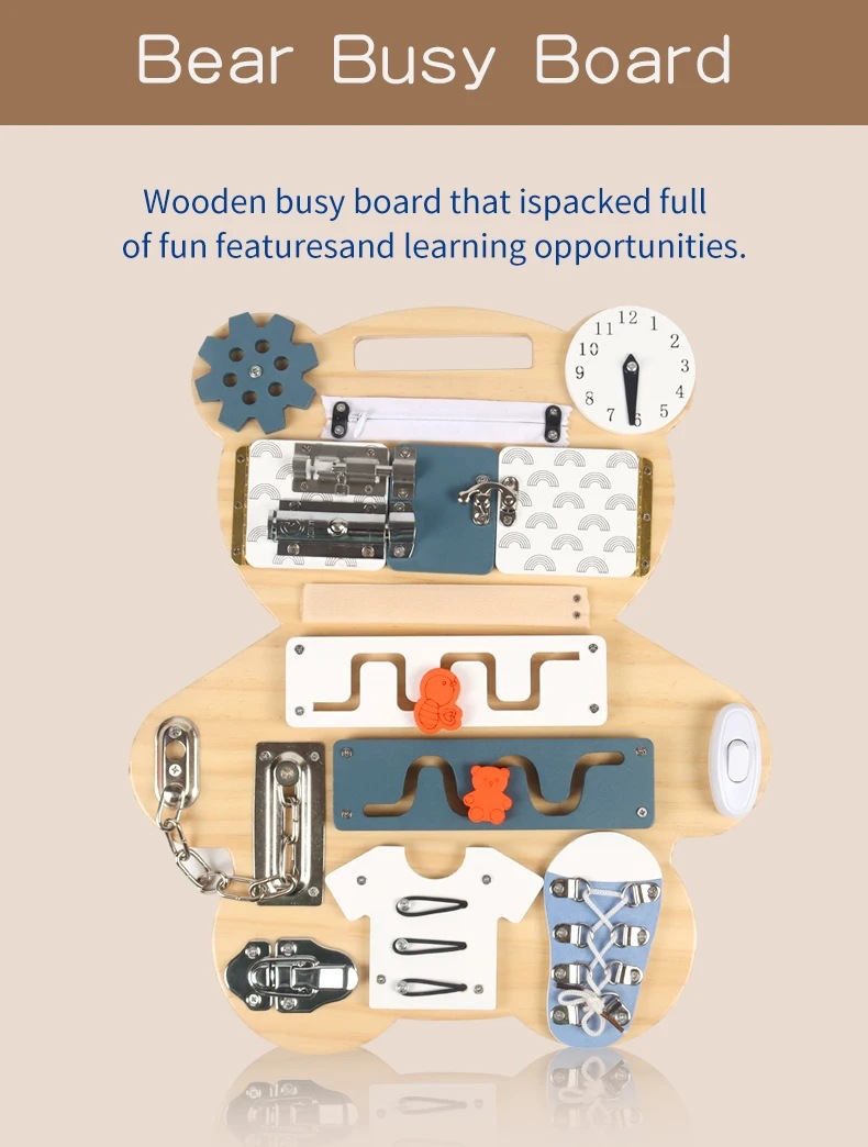 아마존 나무 곰 바쁜 보드 어린이 몬테소리 벽 게임 열린 문 잠금 해제 보드 교육 장난감