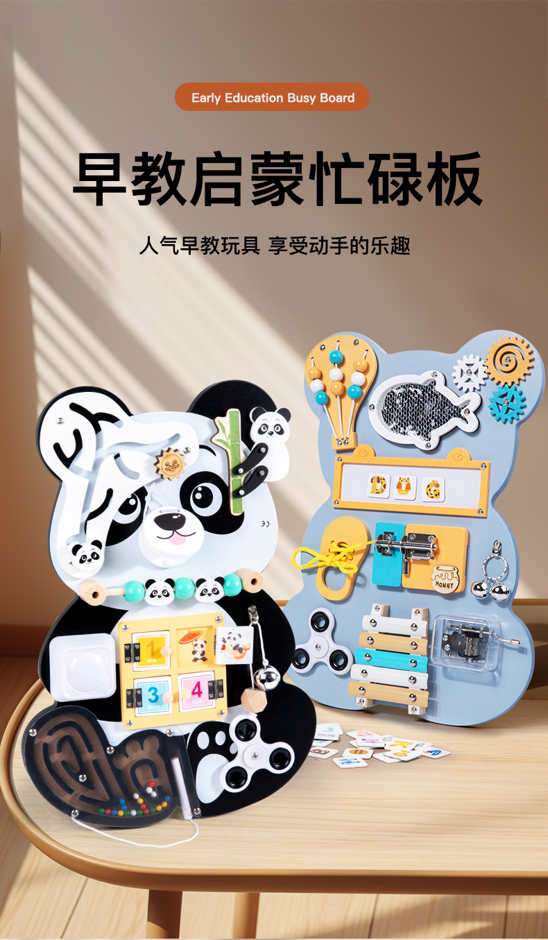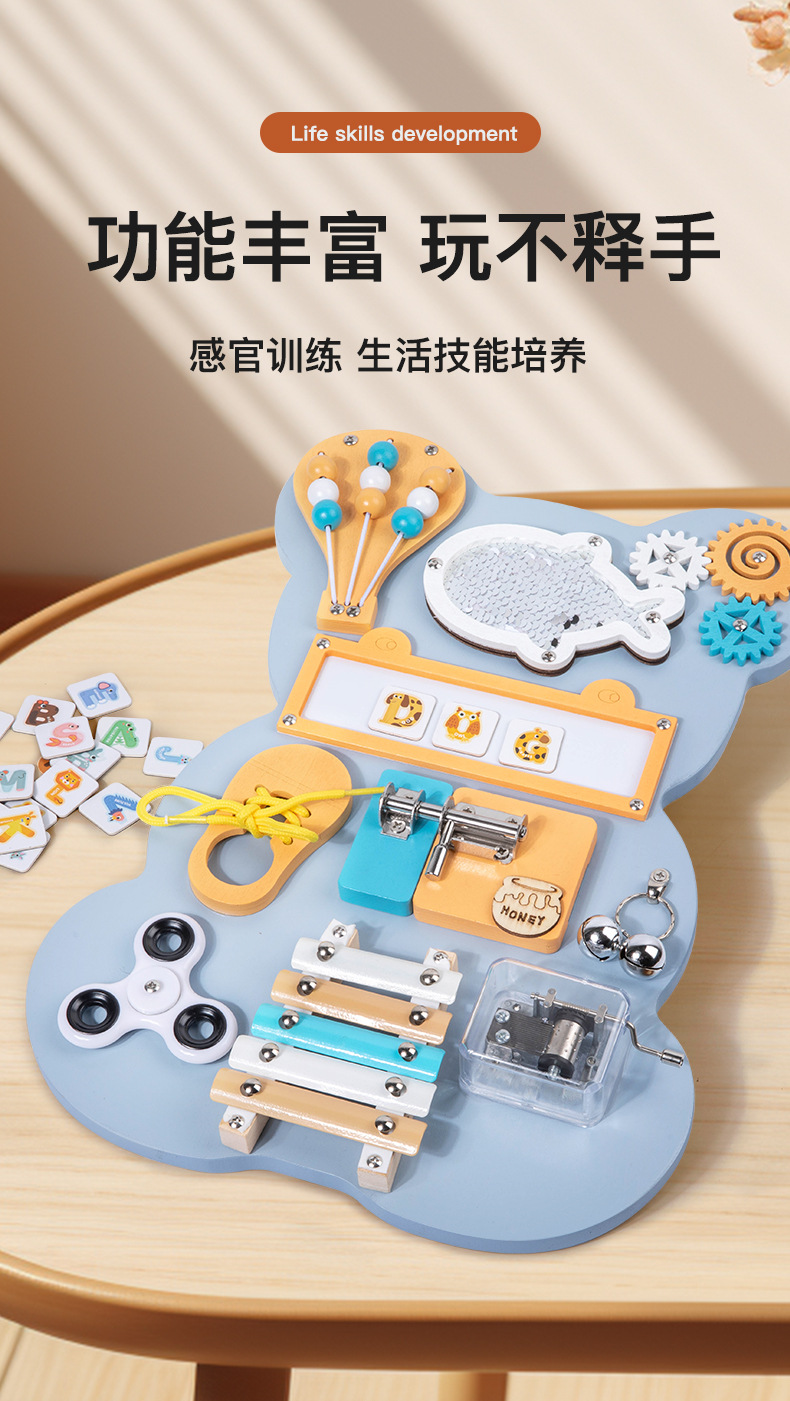 아마존 나무 곰 바쁜 보드 어린이 몬테소리 벽 게임 열린 문 잠금 해제 보드 교육 장난감스토어 가기