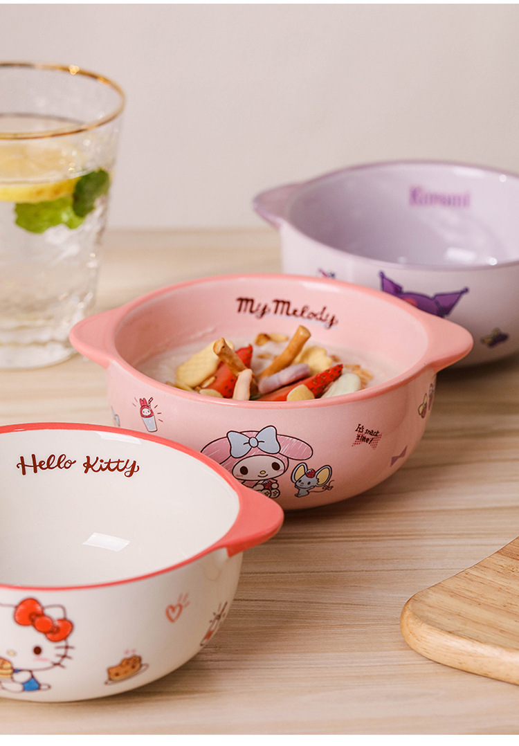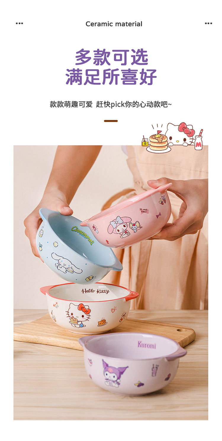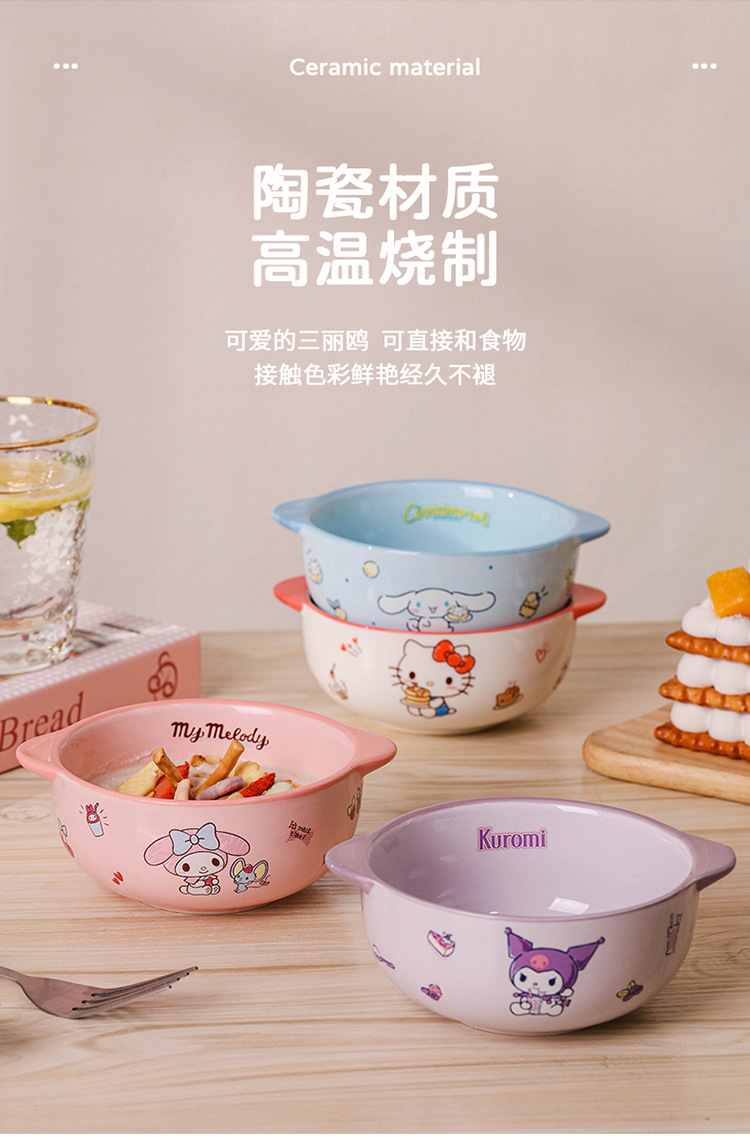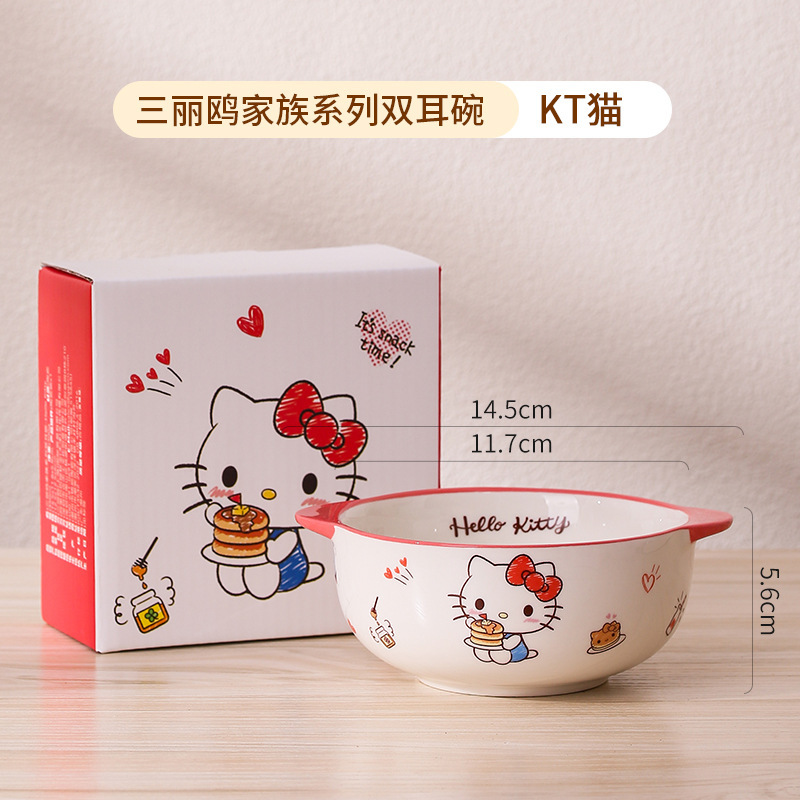 산리오 양이 그릇 식기 먹는 그릇 세트 고급스러운 세라믹 어린이 양이 그릇 수프를 마시는 가정용스토어 가기