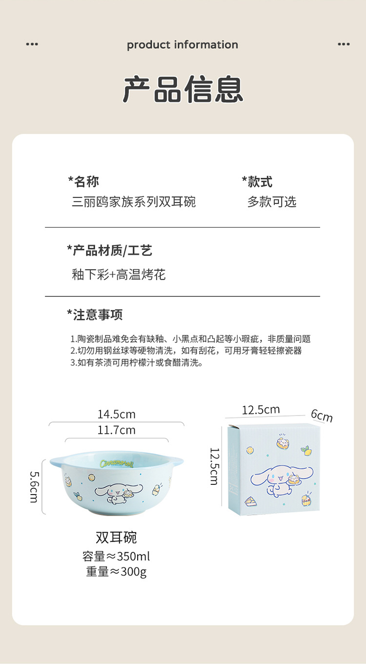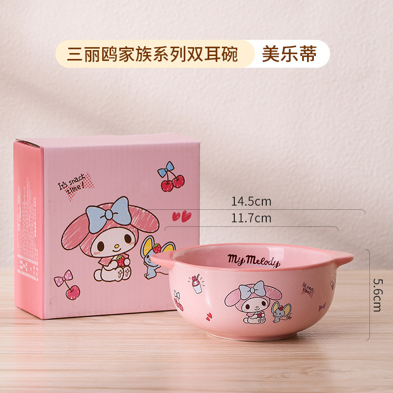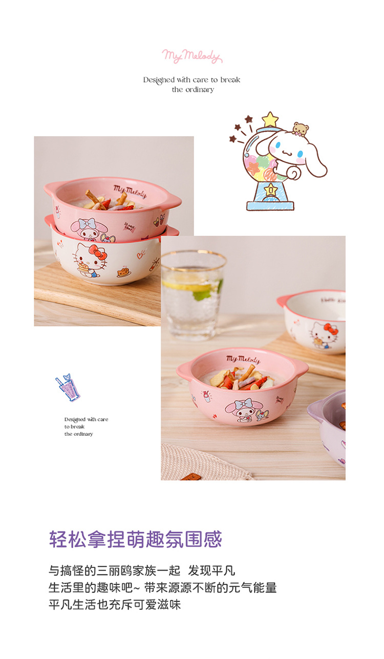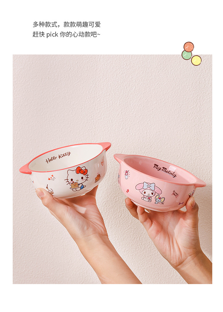 산리오 양이 그릇 식기 먹는 그릇 세트 고급스러운 세라믹 어린이 양이 그릇 수프를 마시는 가정용스토어 가기