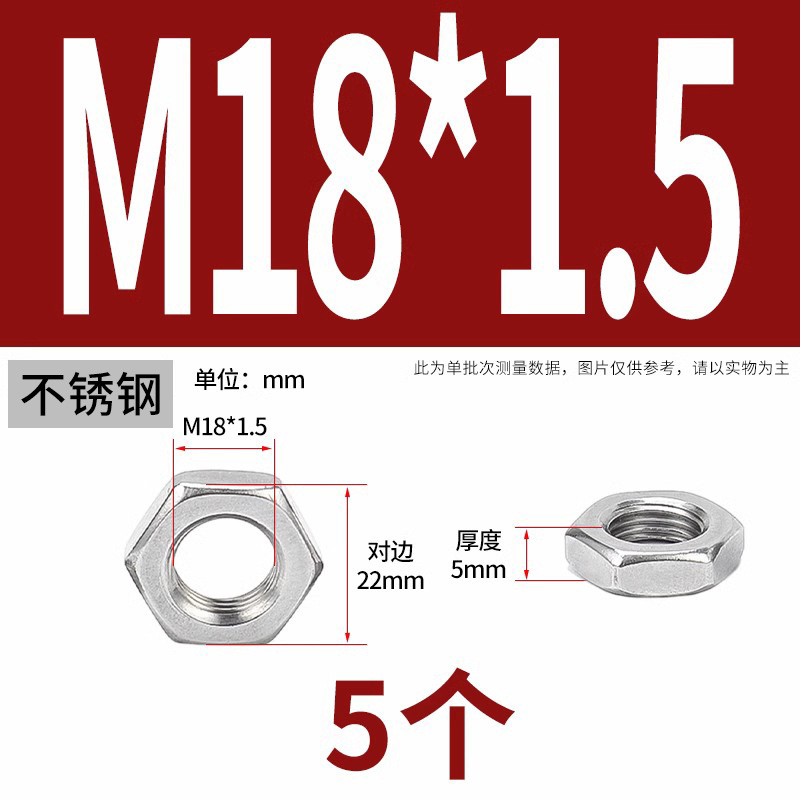 • 304 스테인레스 스틸 M18*1.5 피치*5 두께*22 반대편(5개)