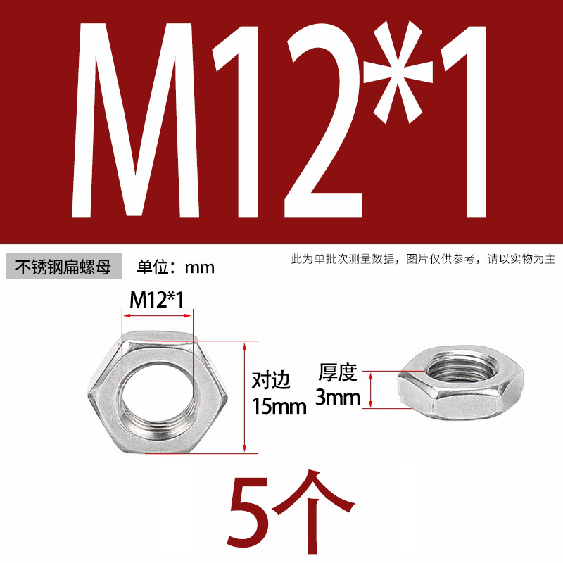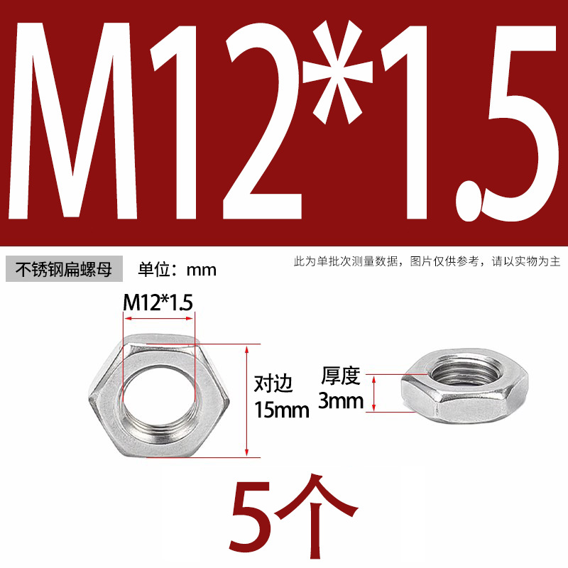 • 304 스테인레스 스틸 M12*1.25 피치*3.5 두께*15 반대 가장자리(5개)