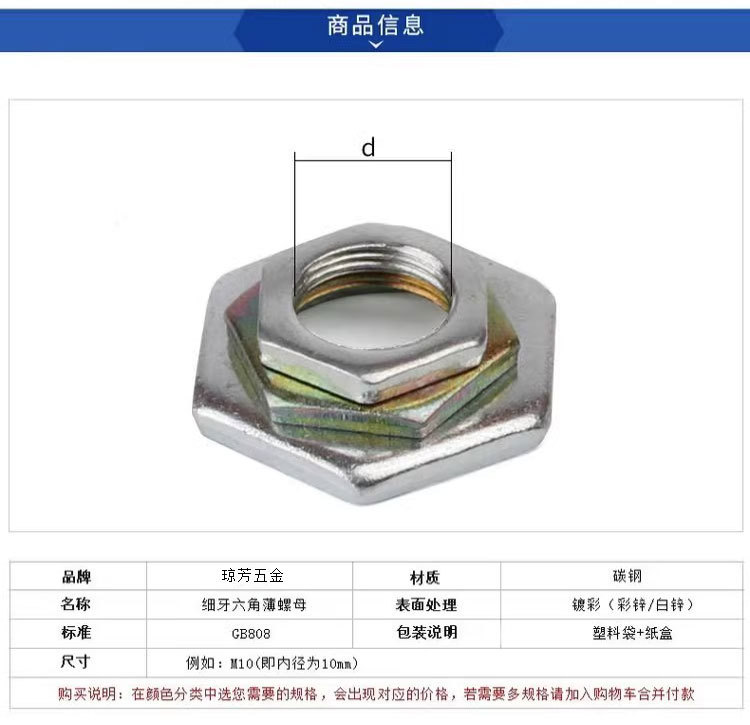 304 스테인레스 스틸 얇은 너트 미세 치아 철 아연 도금 GB808 구리 플랫 너트 육각형 수도관 4 인치 6-42스토어 가기