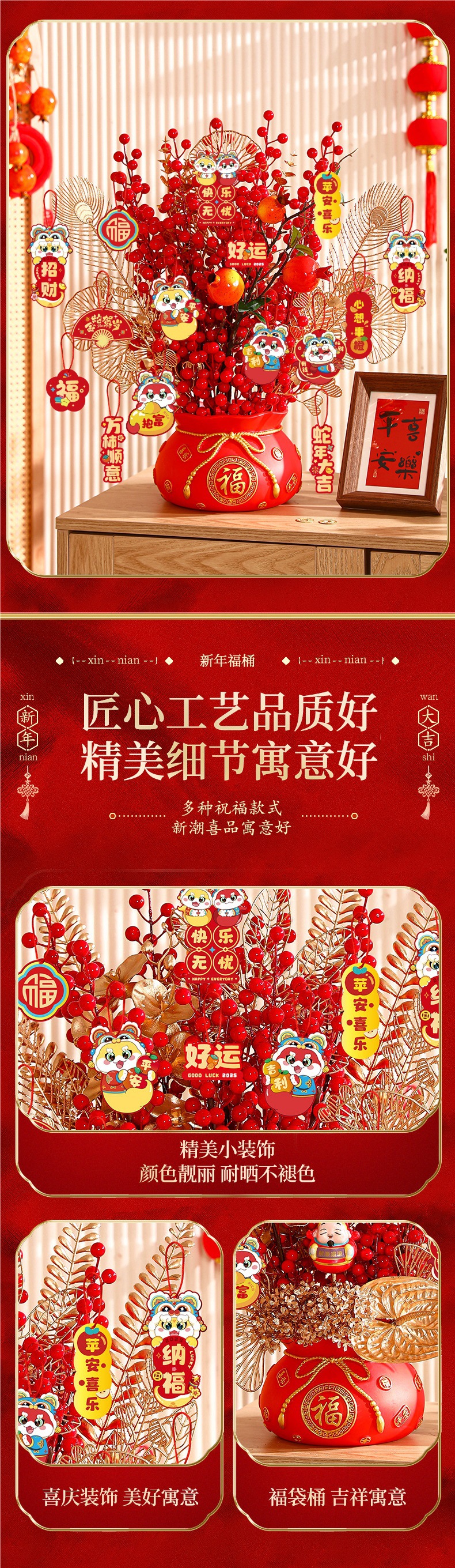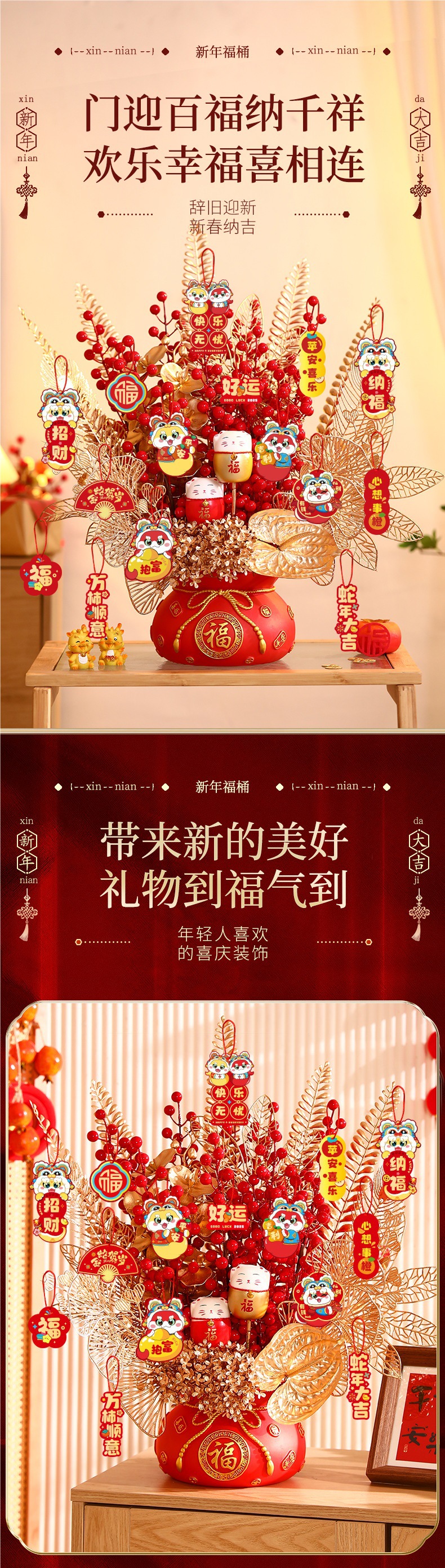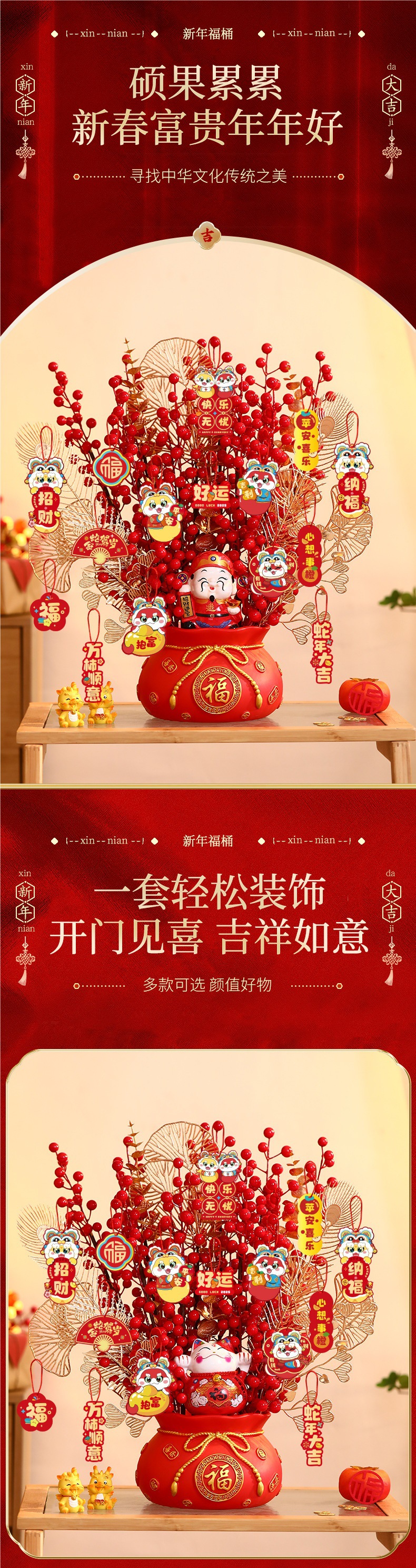 설날 버킷 2025 년 스네이크 봄 축제 새해 장식 거실 데스크탑 정렬 장식품 포춘 과일 무료 배송