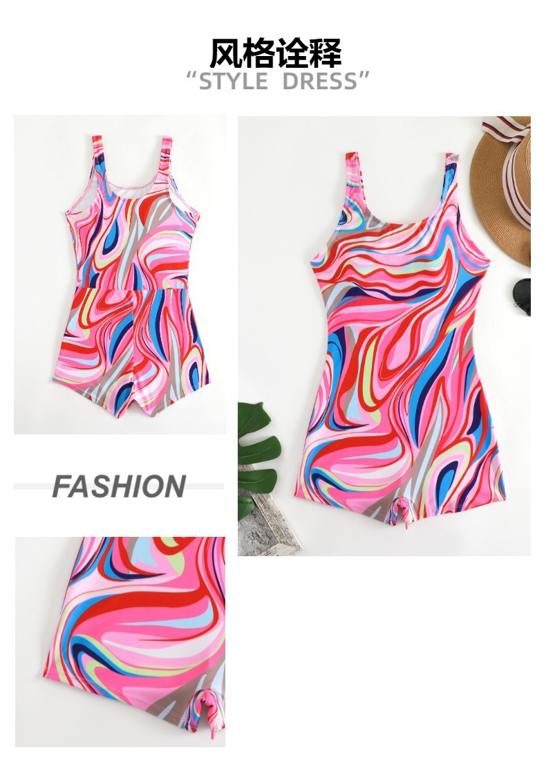 유럽과 미국의 대외 무역 새로운 골판지 둥근 목 수영복 여성 민소매 보수 해변 온천 수영복