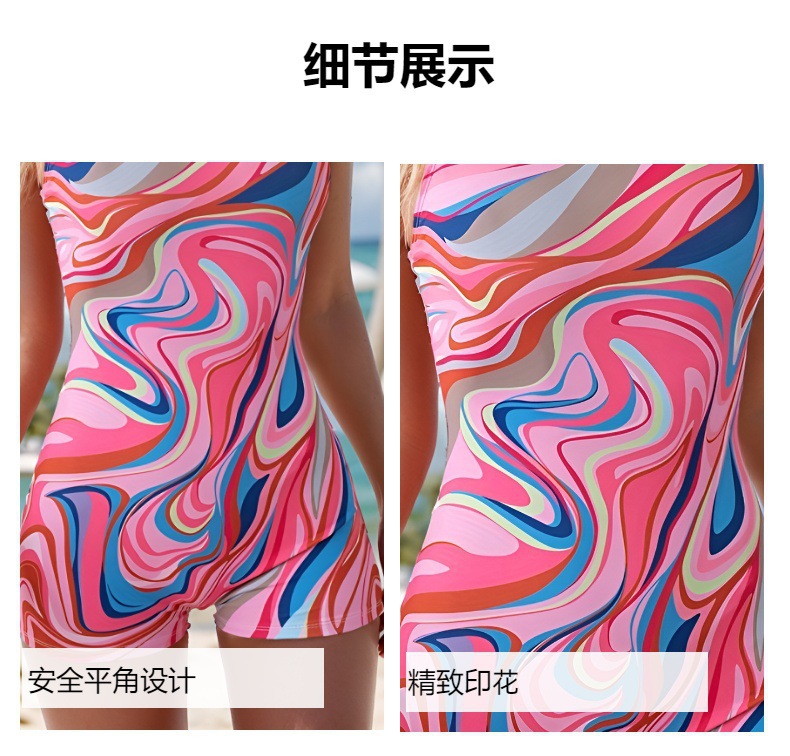 유럽과 미국의 대외 무역 새로운 골판지 둥근 목 수영복 여성 민소매 보수 해변 온천 수영복스토어 가기