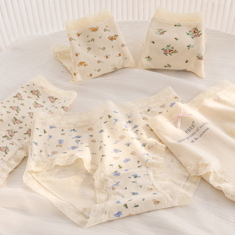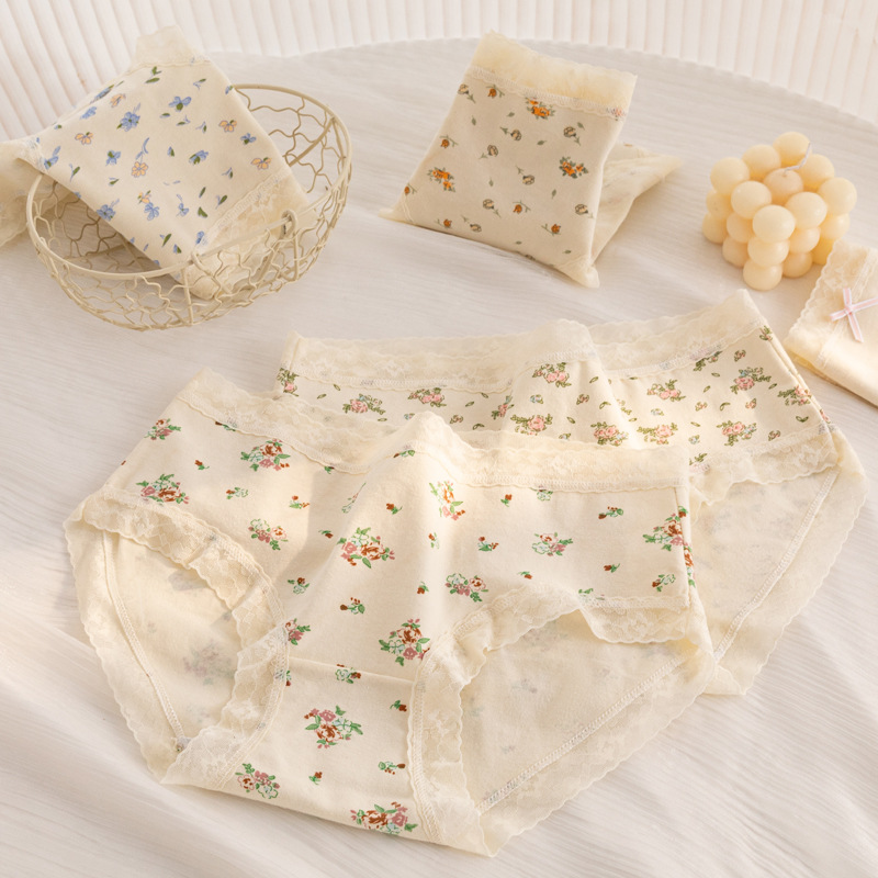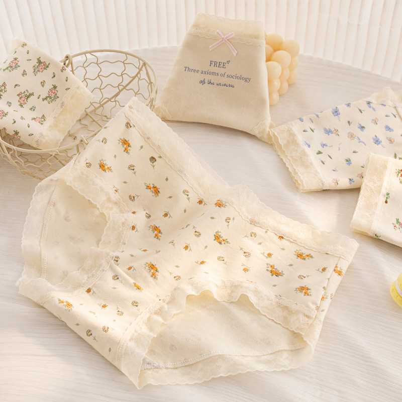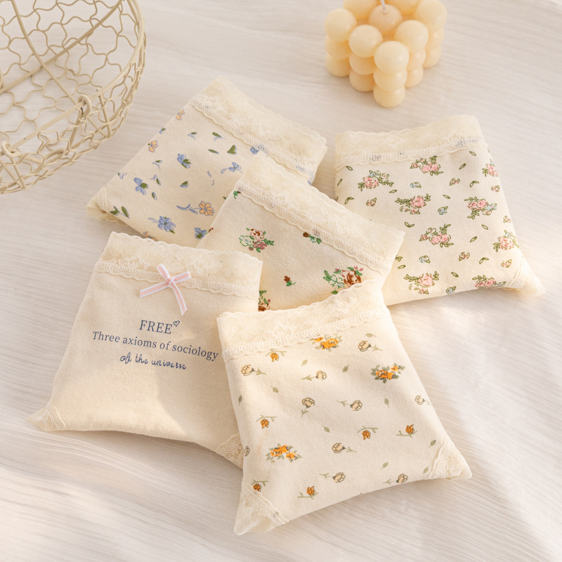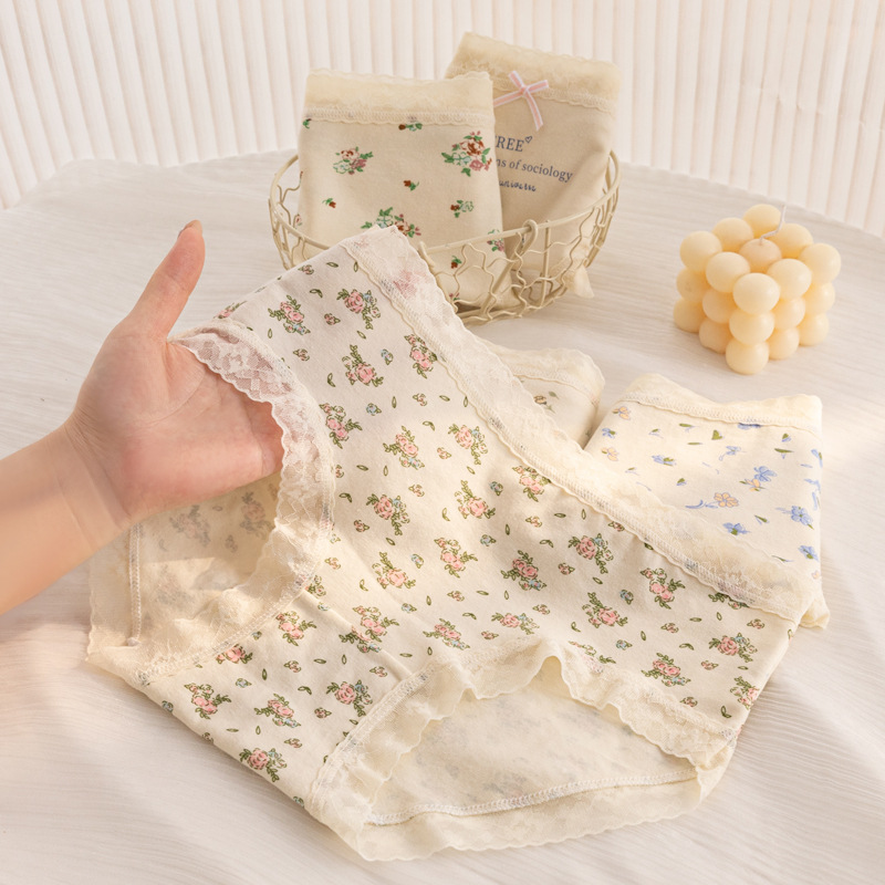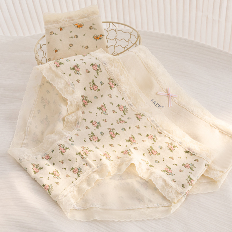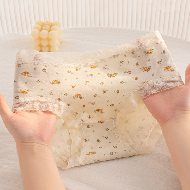 정원 일기 ~ 아기 면 레이스 달콤한 부드러운 높은 탄성 순수 코튼 중간 허리 낮은 허리 숙녀 브리프
