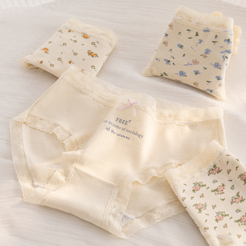 정원 일기 ~ 아기 면 레이스 달콤한 부드러운 높은 탄성 순수 코튼 중간 허리 낮은 허리 숙녀 브리프스토어 가기