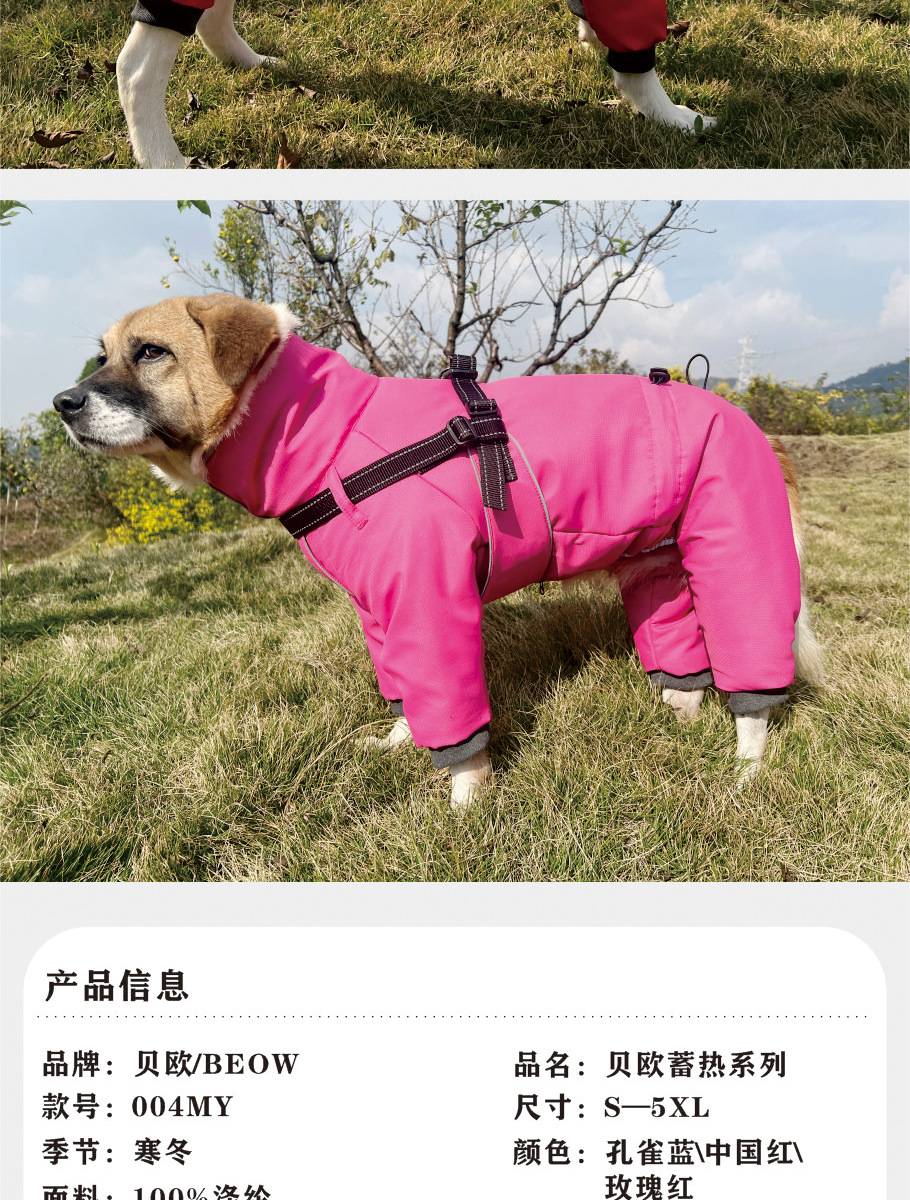 Beo 개 옷 면 옷 러시 의류 방풍 방수 중형 및 대형 개 래브라도 국경 동물 축산 겨울 따뜻한 면화 옷