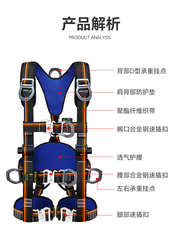 고공 등반 작업을 위한 Hongjian 풍력 발전 안전 벨트, 추락 방지 랩, 현장 구조용 탈착식 안전 벨트스토어 가기