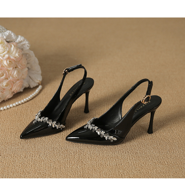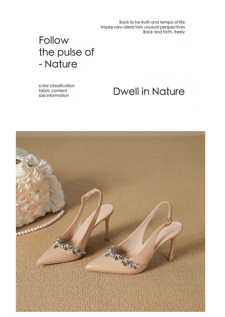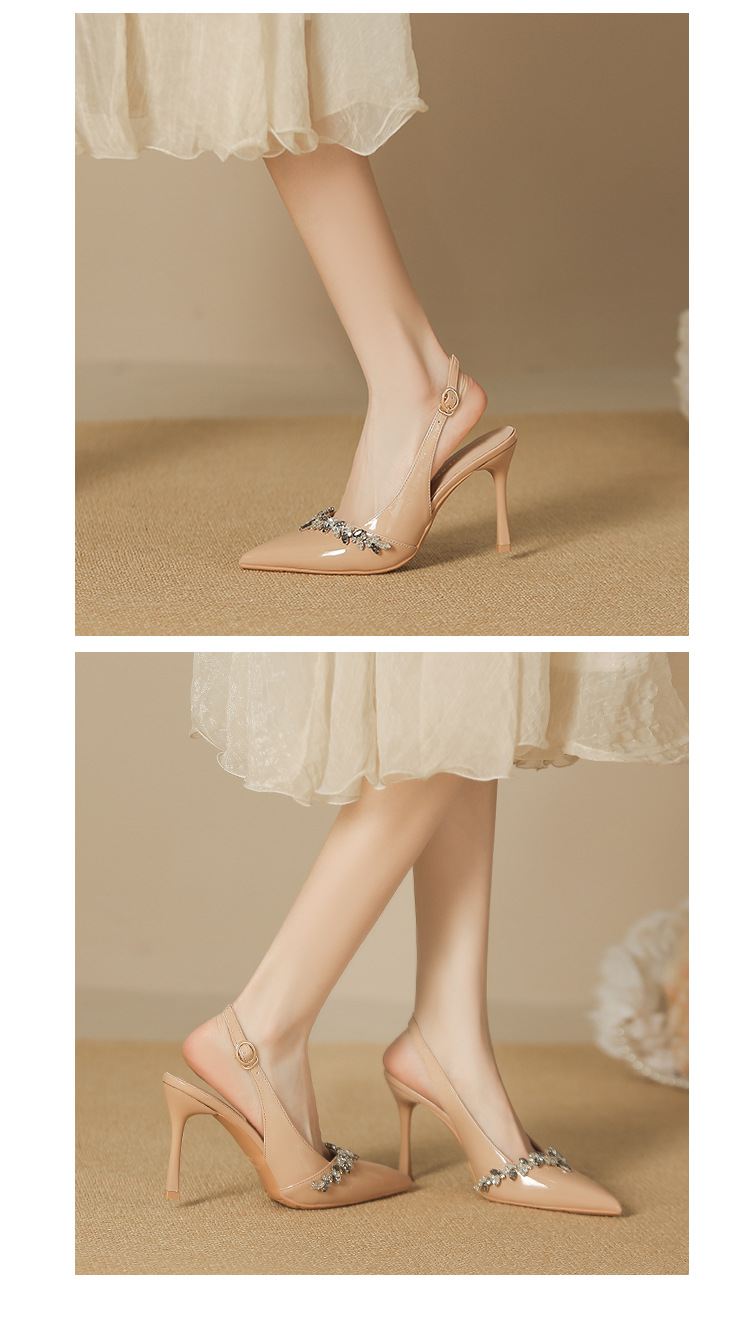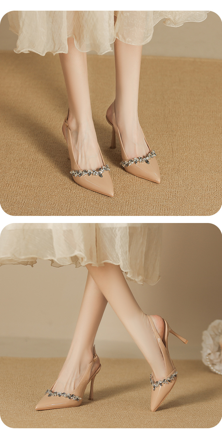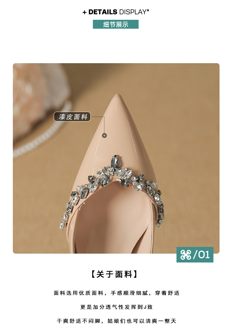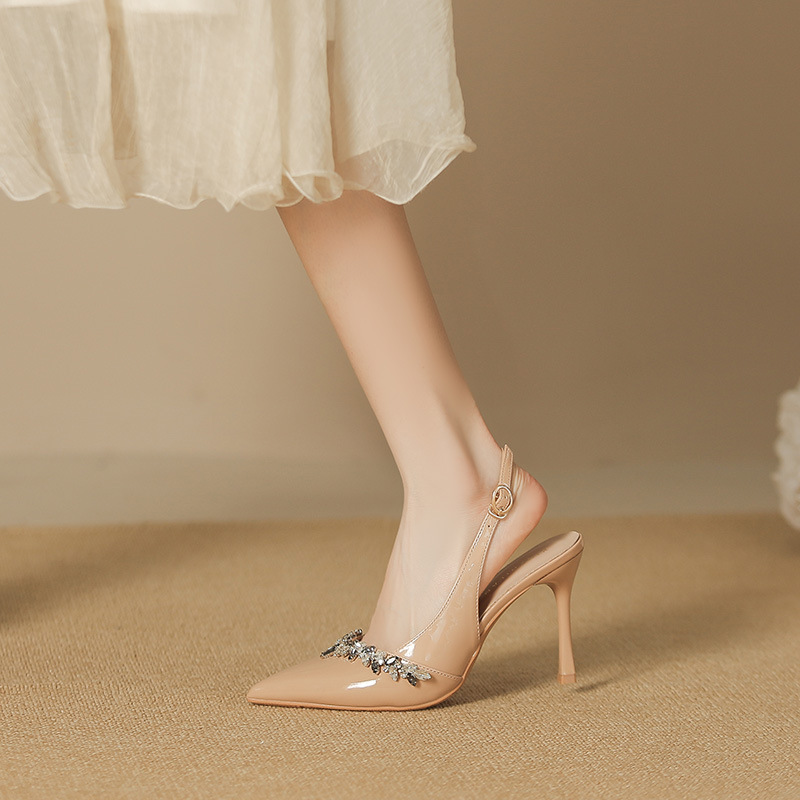프랑스 누드 특허 가죽 백 빈 신발 새로운 뾰족한 섹시한 모조 다이아몬드 트림 여성을위한 아름다운 기질 올 매치 하이힐스토어 가기