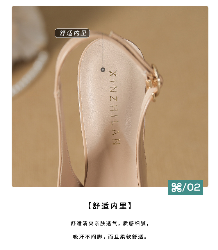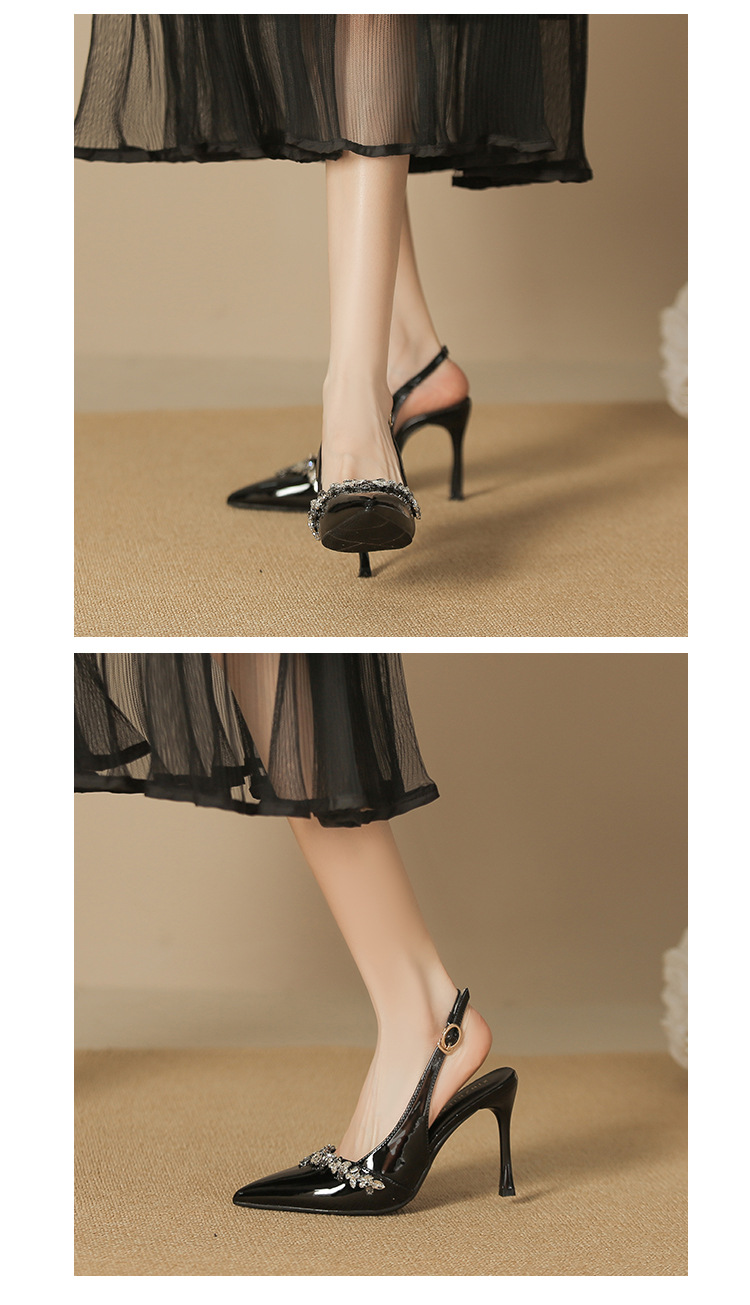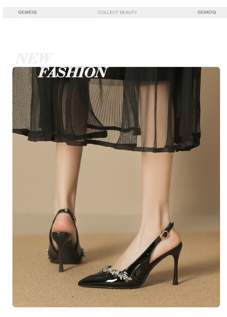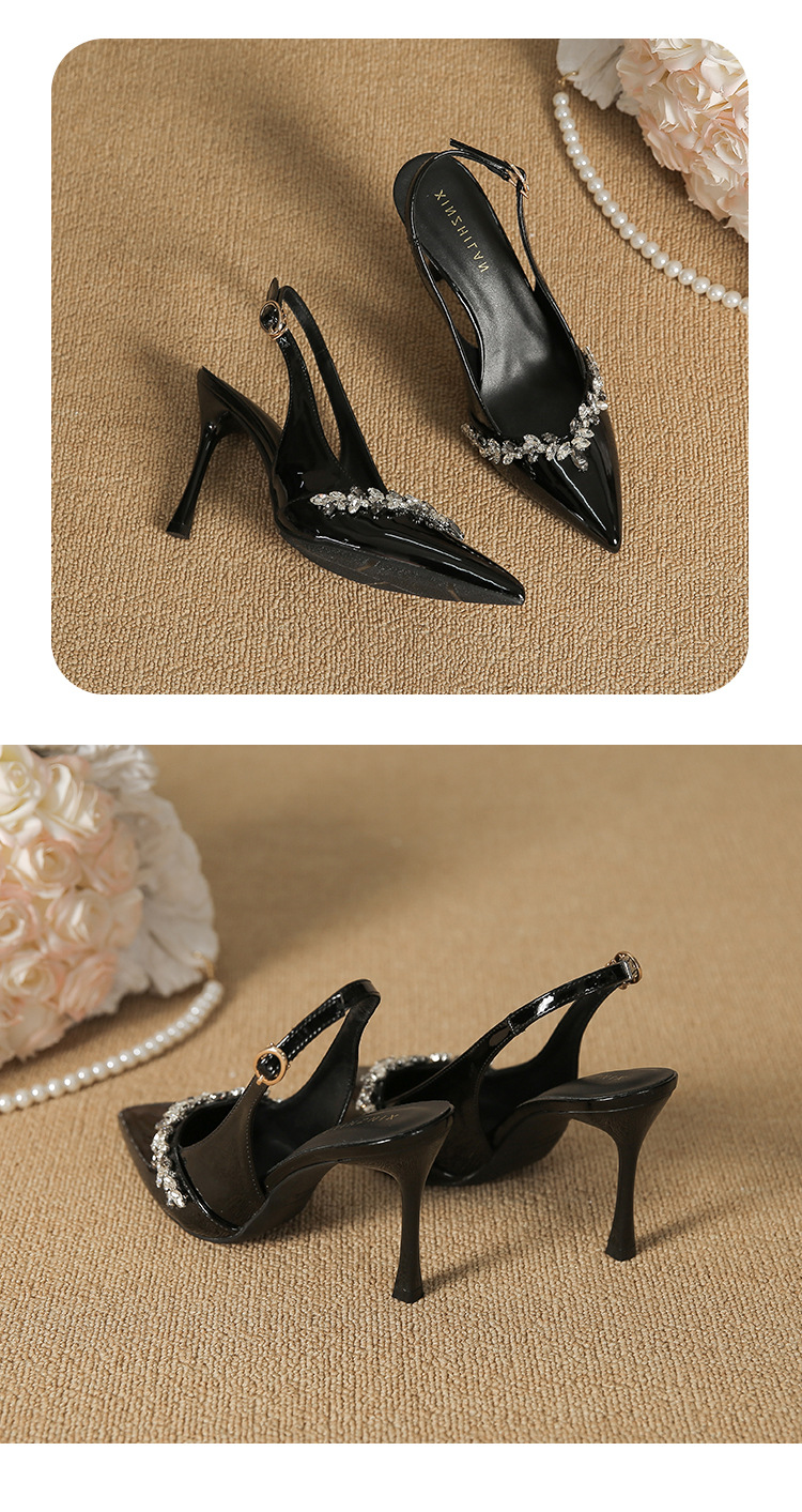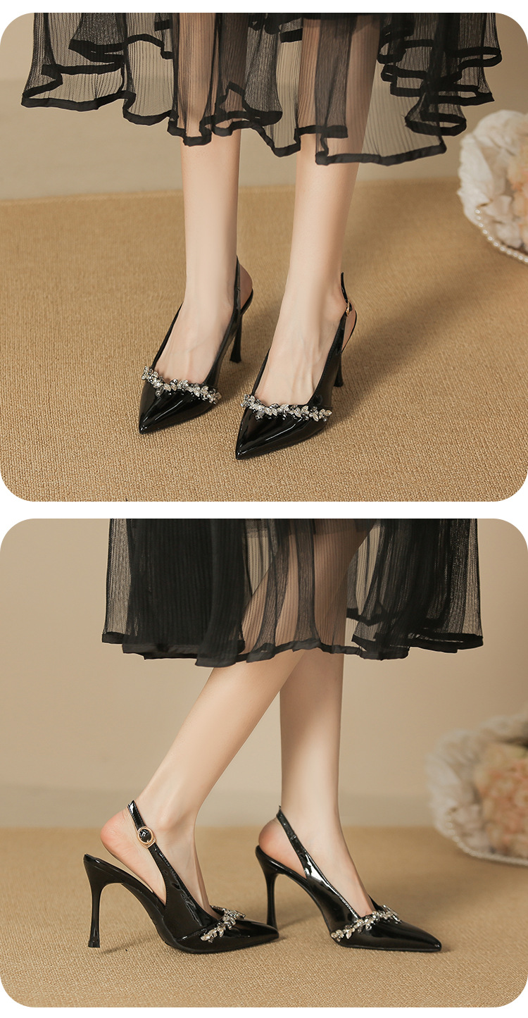 프랑스 누드 특허 가죽 백 빈 신발 새로운 뾰족한 섹시한 모조 다이아몬드 트림 여성을위한 아름다운 기질 올 매치 하이힐스토어 가기