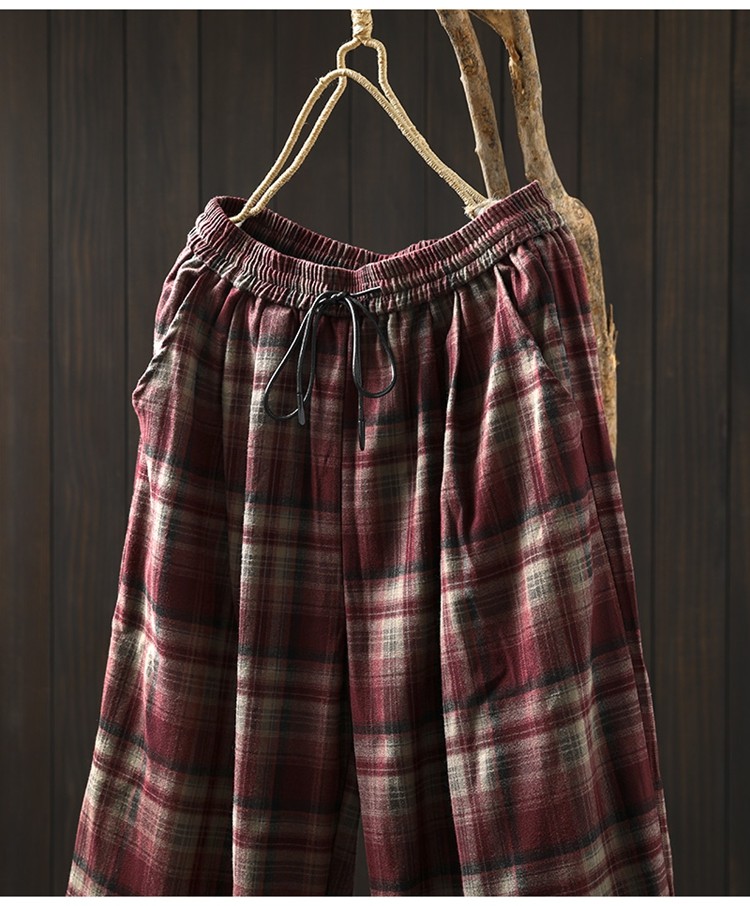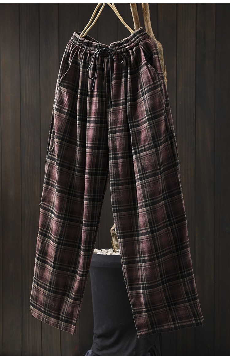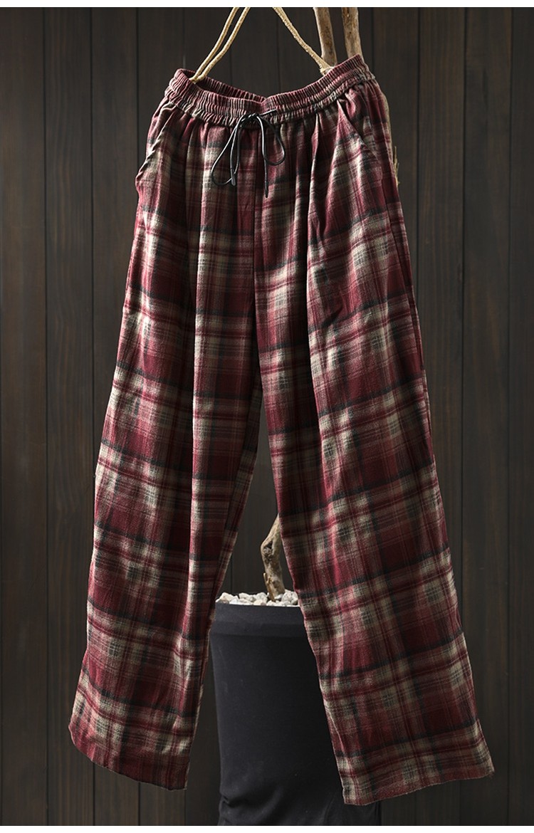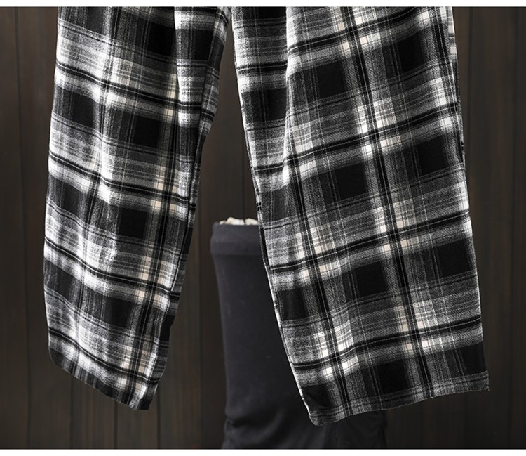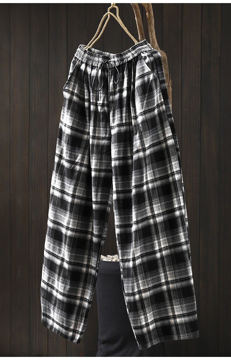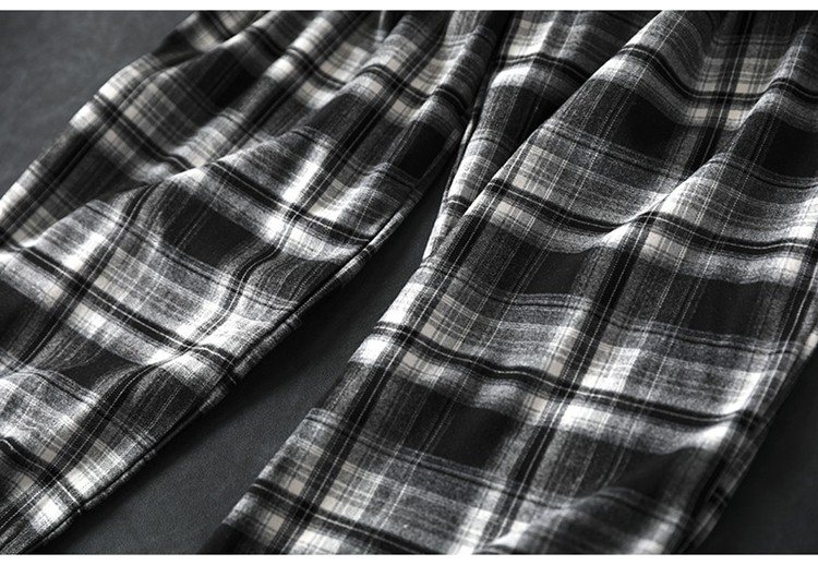 봄 새로운 격자 무늬 캐주얼 바지 여성용 느슨한 슬림 끈 Elastostelastic 높은 허리 모직 바지 2199스토어 가기