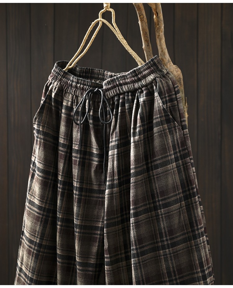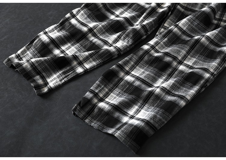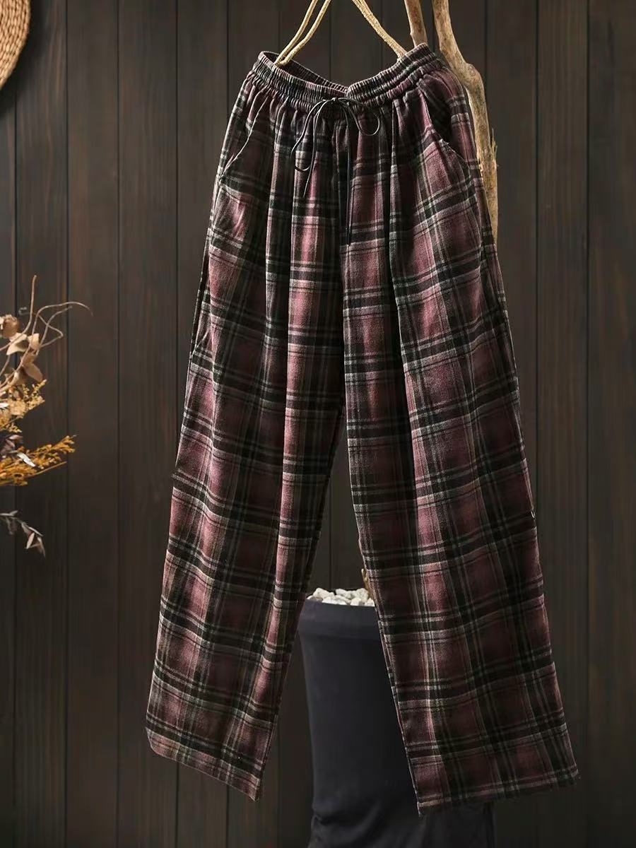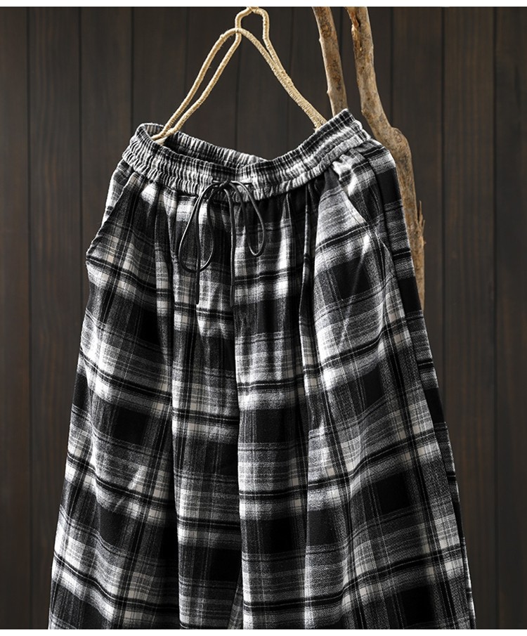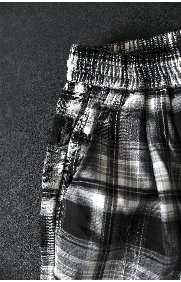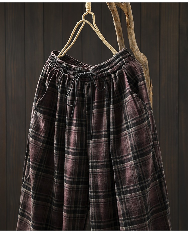 봄 새로운 격자 무늬 캐주얼 바지 여성용 느슨한 슬림 끈 Elastostelastic 높은 허리 모직 바지 2199스토어 가기