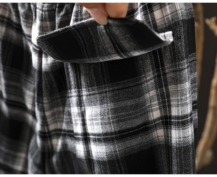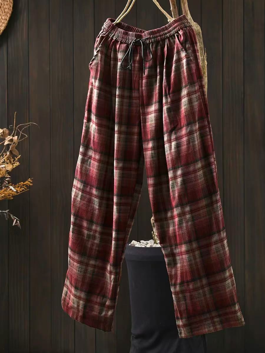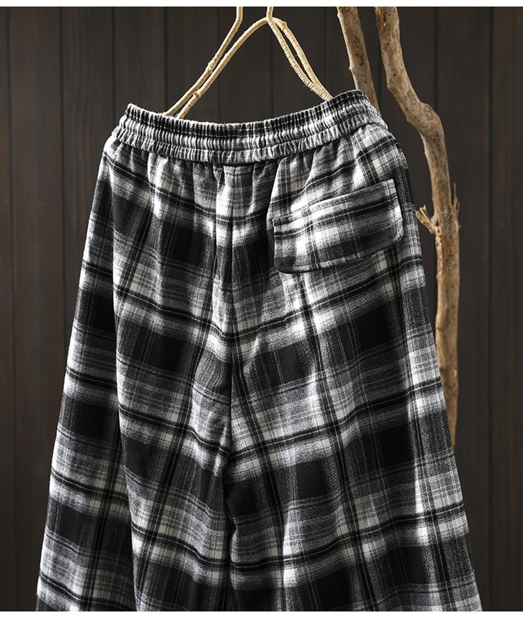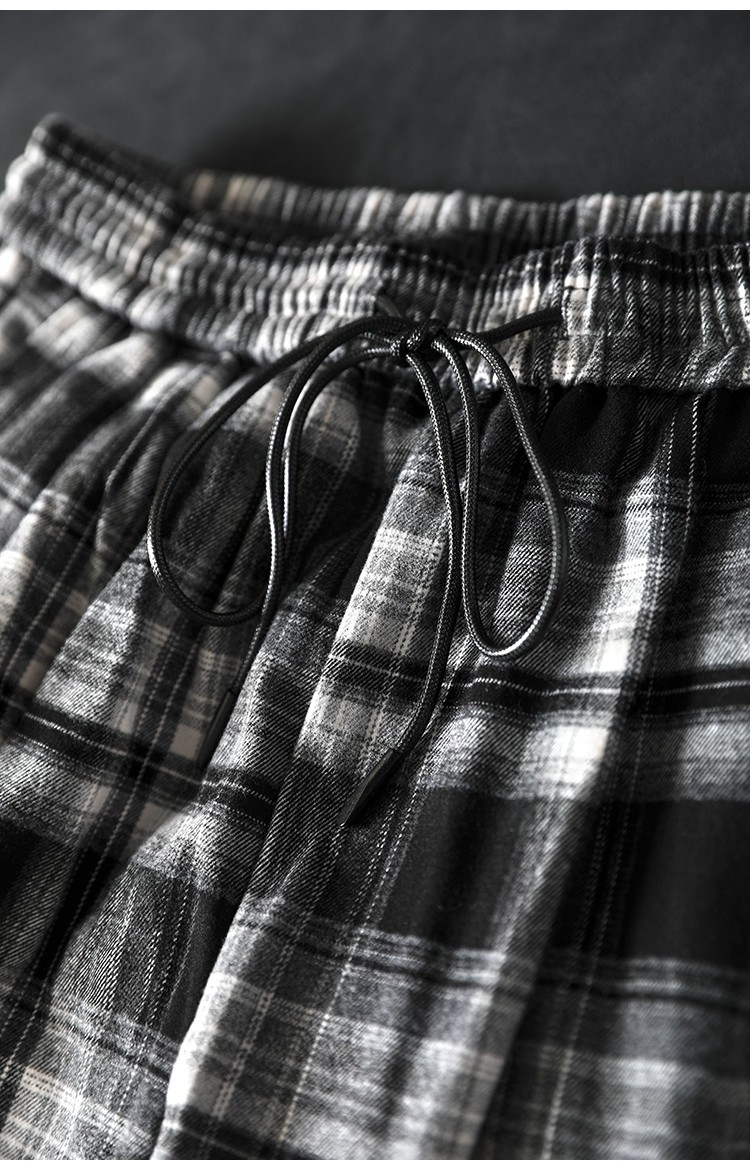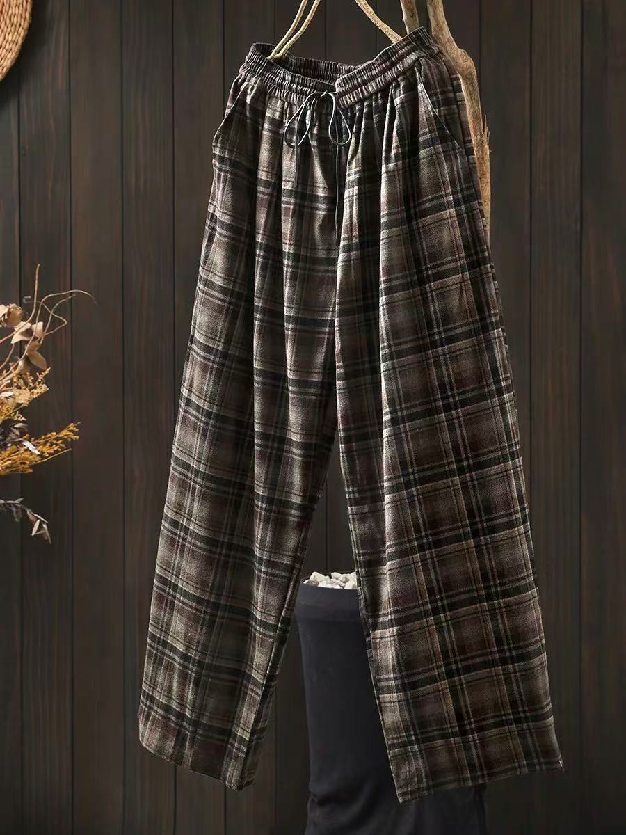 봄 새로운 격자 무늬 캐주얼 바지 여성용 느슨한 슬림 끈 Elastostelastic 높은 허리 모직 바지 2199스토어 가기