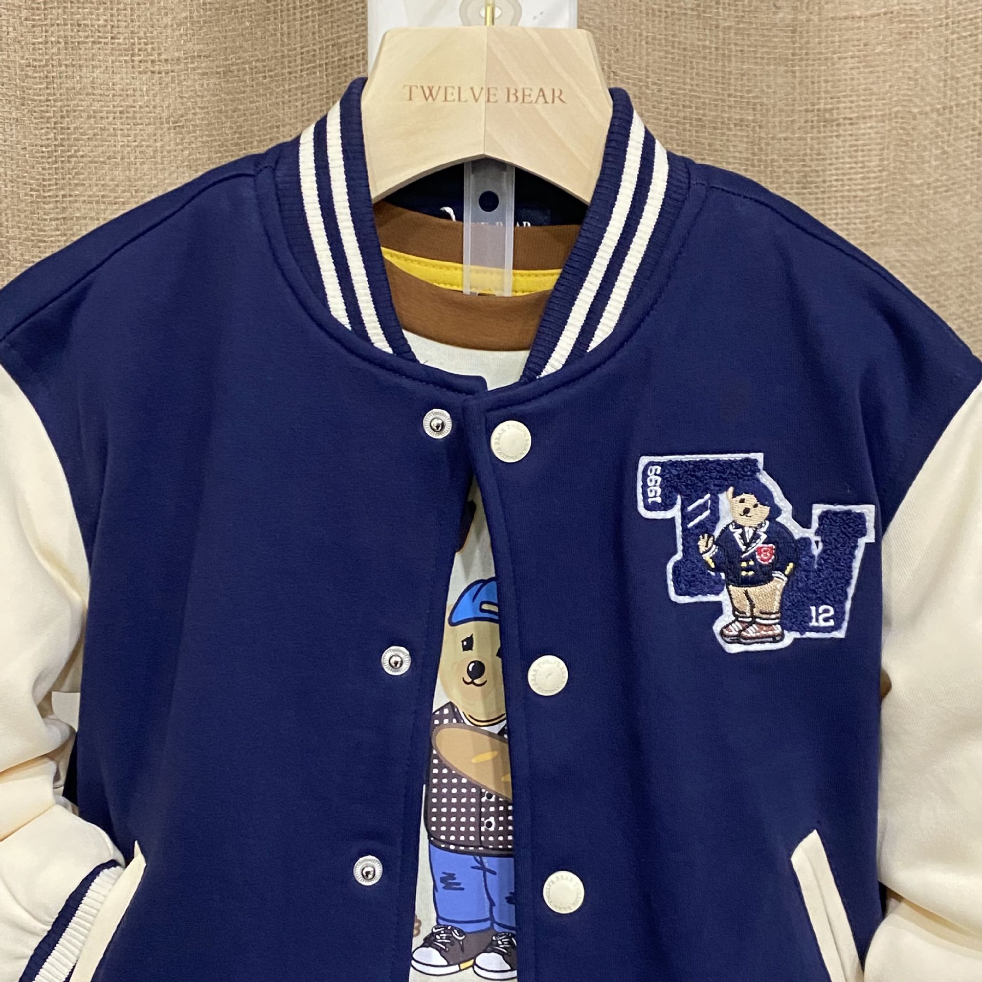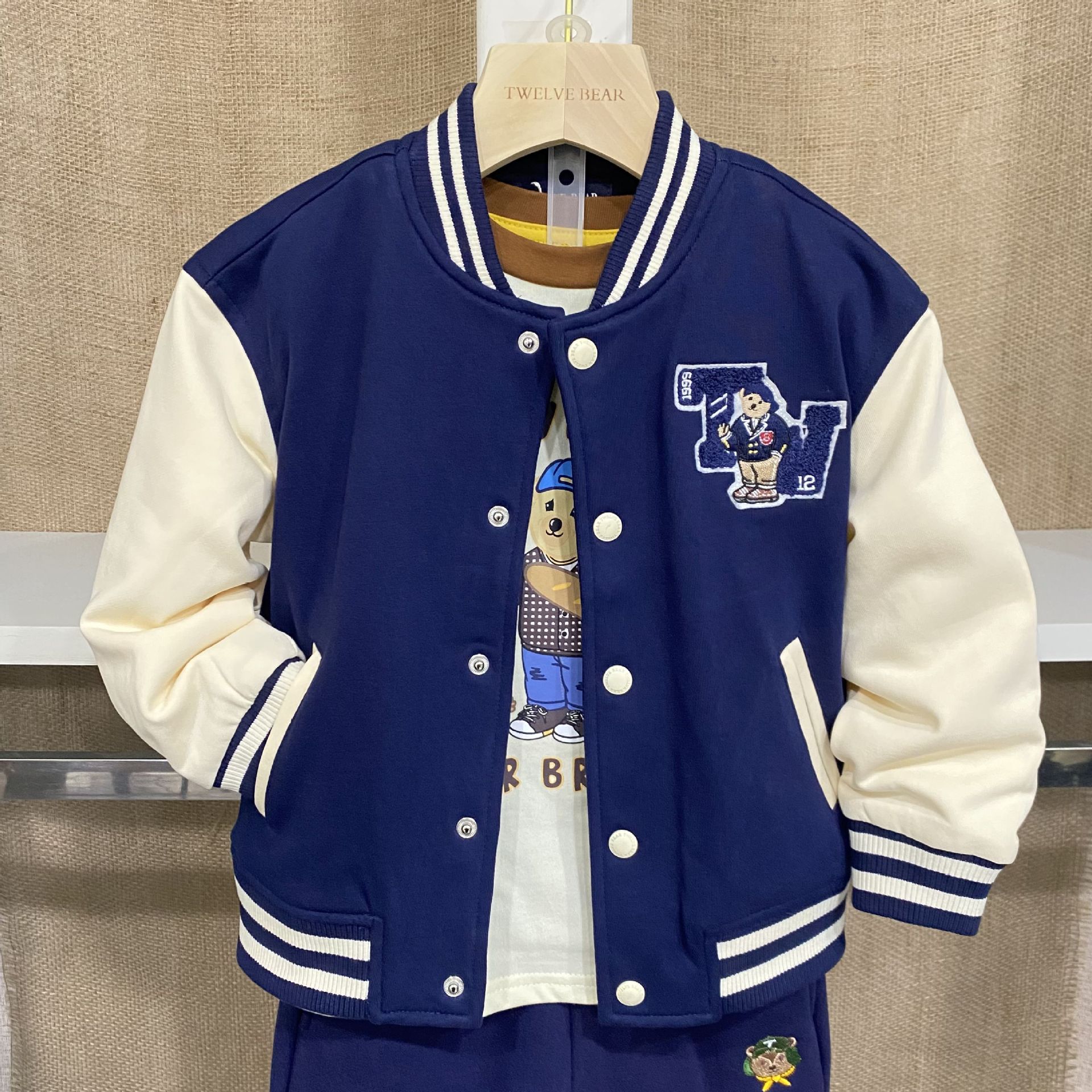 곰돌이 아동복 남아 재킷 어린이 야구복 봄 가을 남아용 재킷 스탠드 칼라 곰돌이 아동 니트 재킷스토어 가기