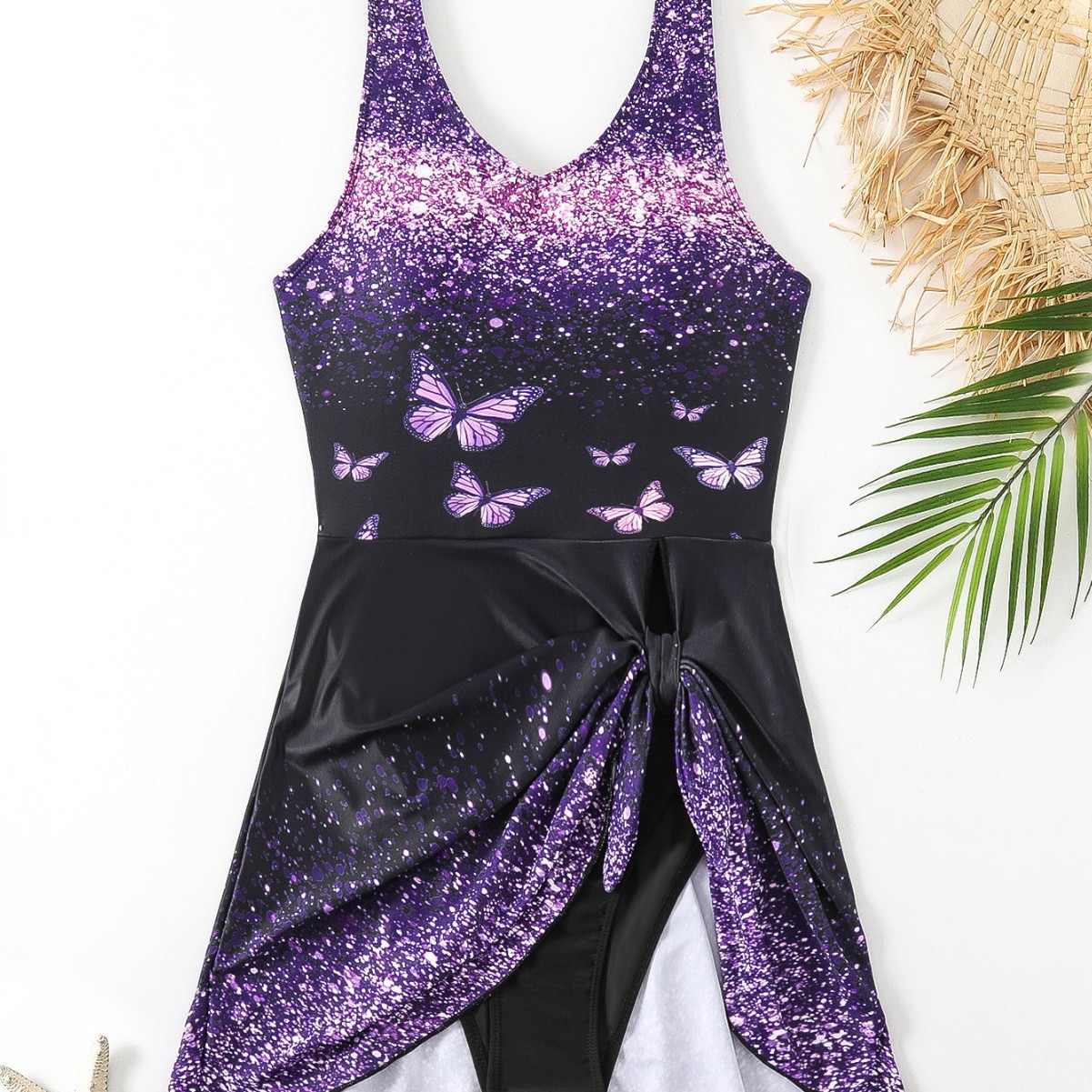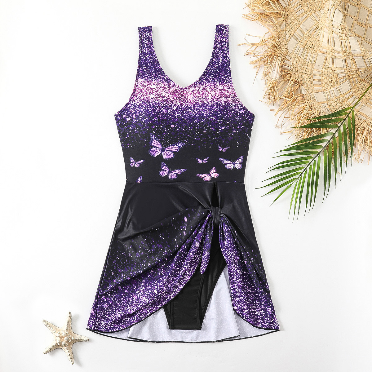 유럽과 미국의 대외 무역 폭발 2024 는 원피스 수영복 여성 보라색 나비 섹시한 국경 간 대외 무역 골프스토어 가기