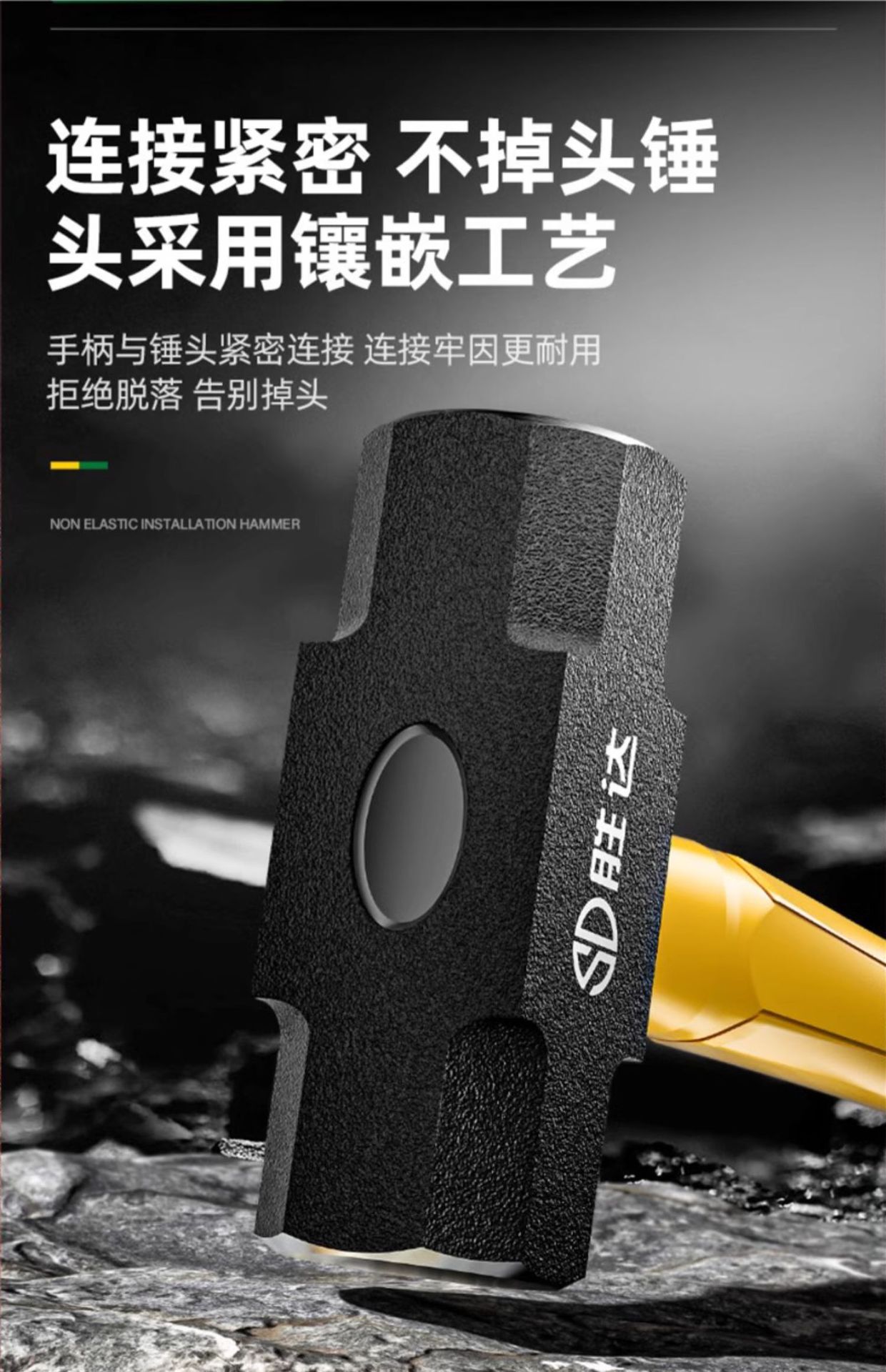 SD/Shengda 도구 2-10LB 나무 손잡이 팔각형 망치 돌 망치 고무 손잡이 팔각형 망치 높은 탄소 강철 광장 망치