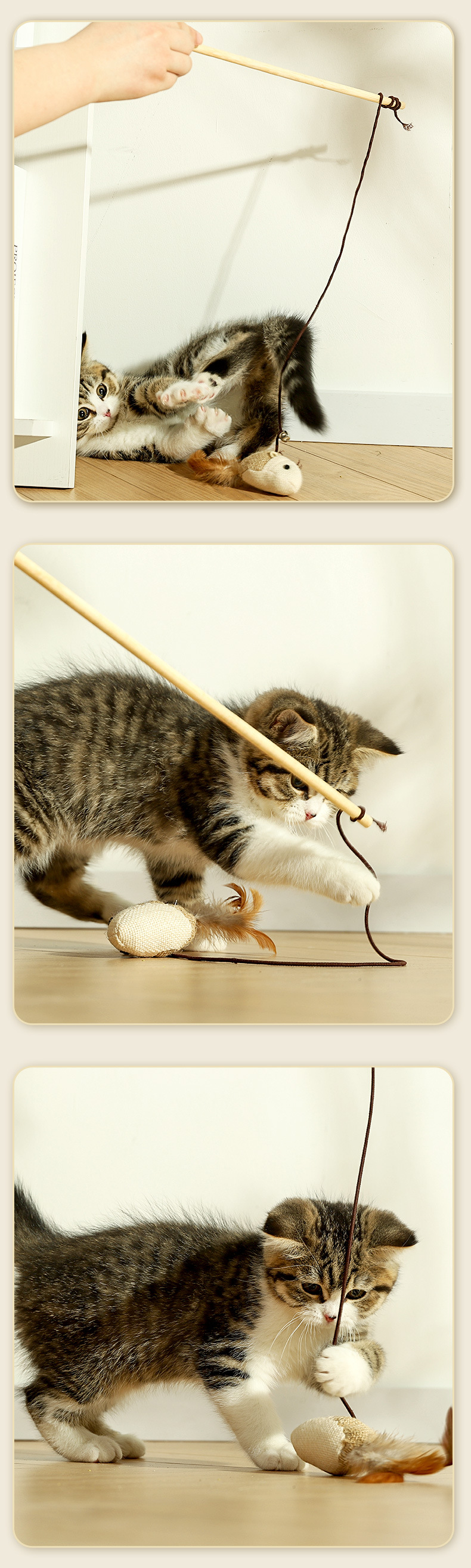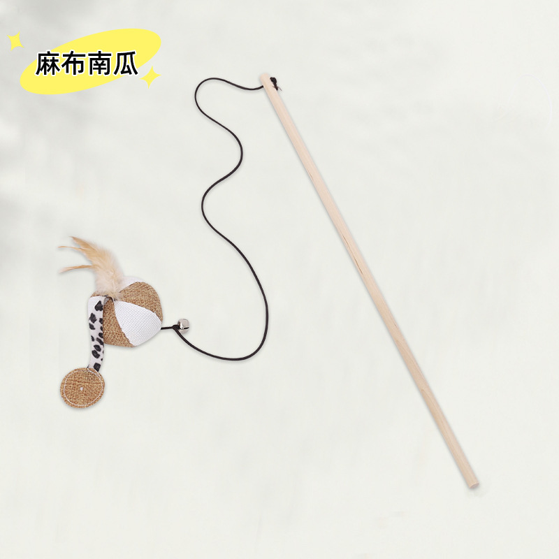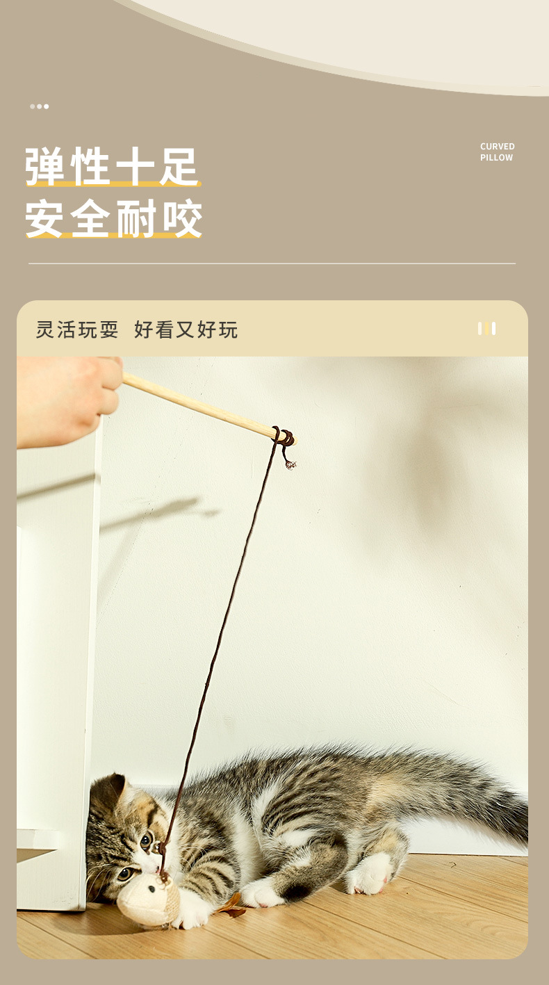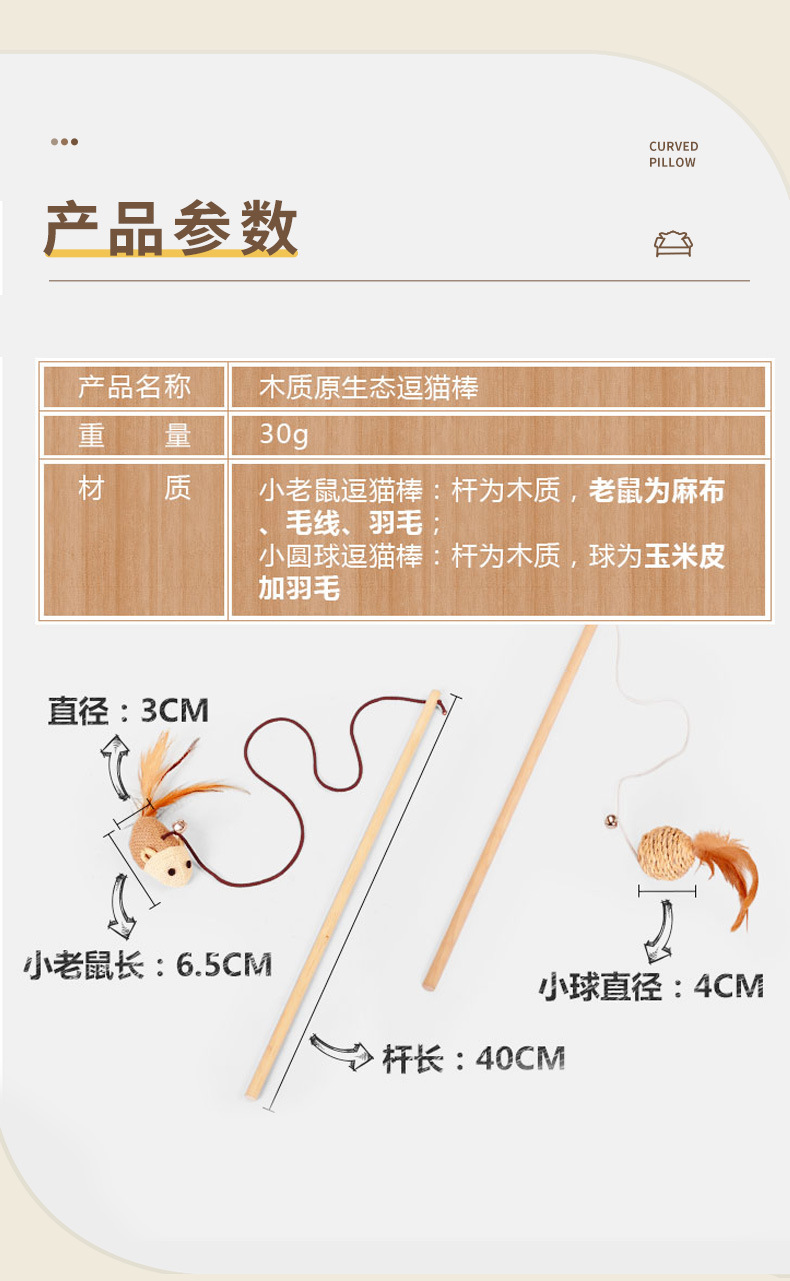 【品名】:木质原生态逗猫棒带(小老鼠/小圆球)